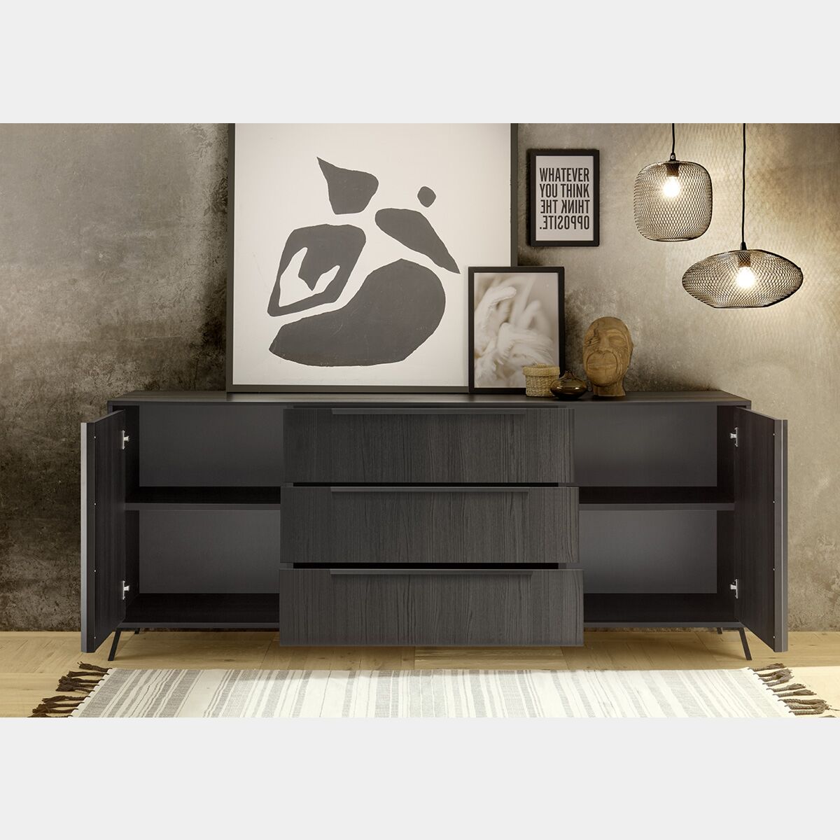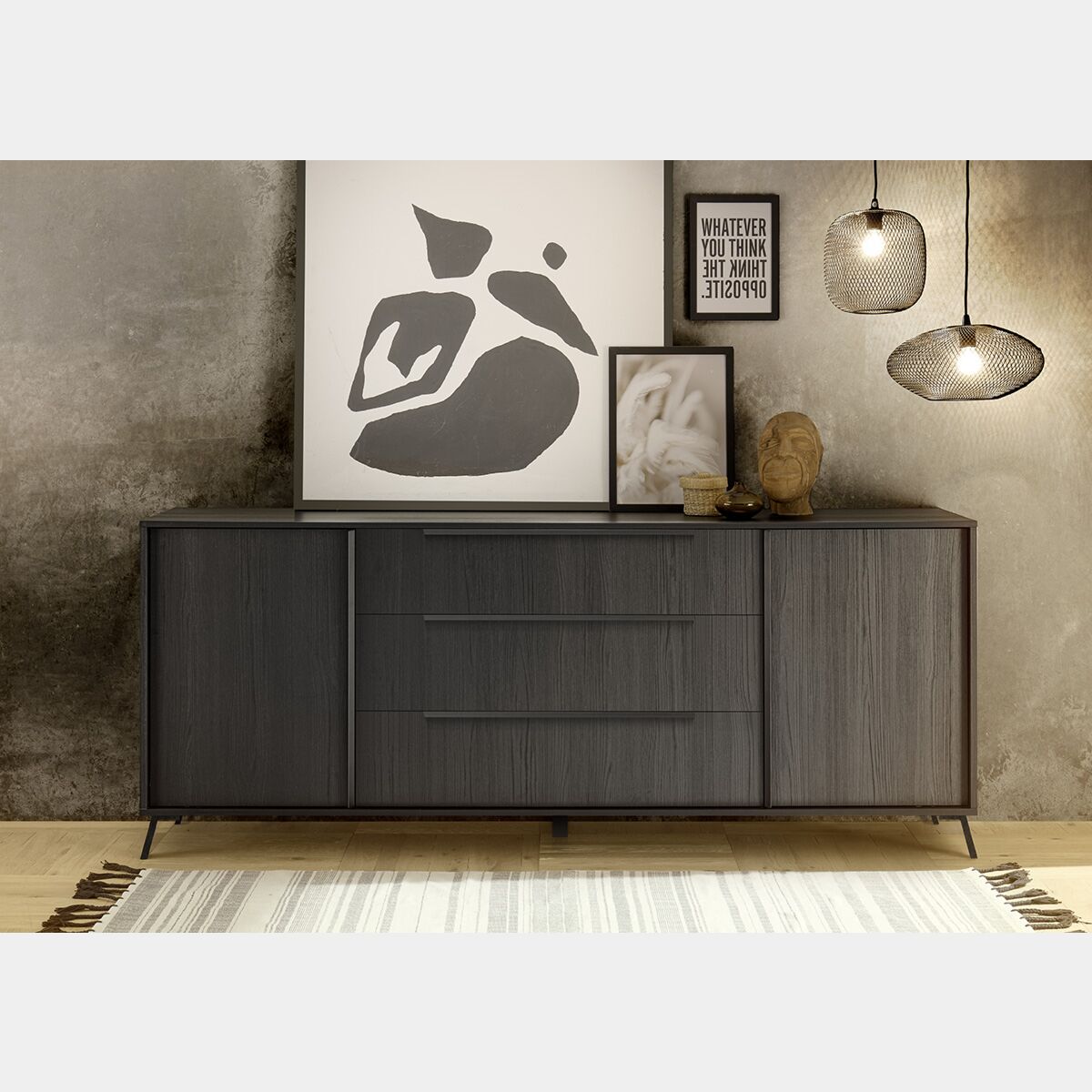 Madia moderna 2 ante 3 cassetti in finitura Nero Frassinato