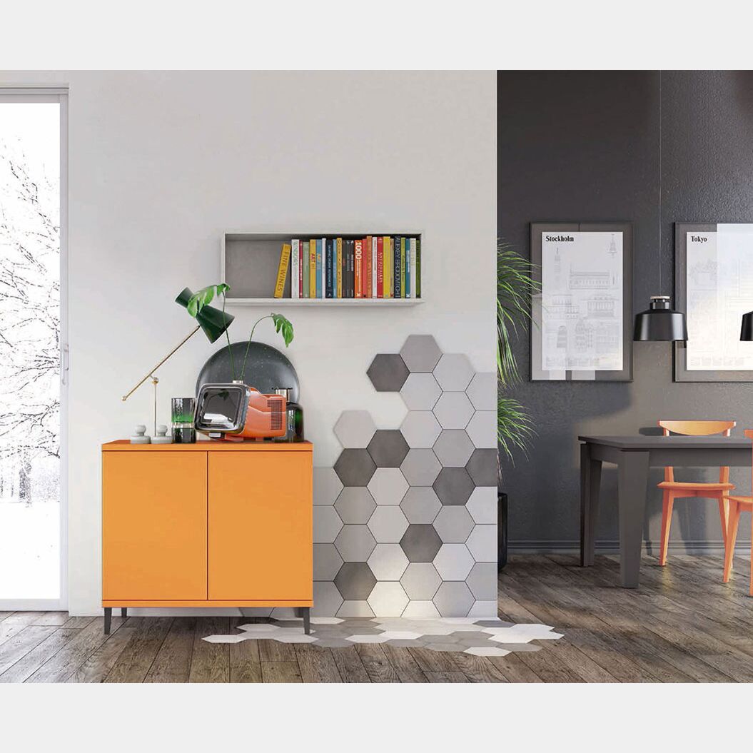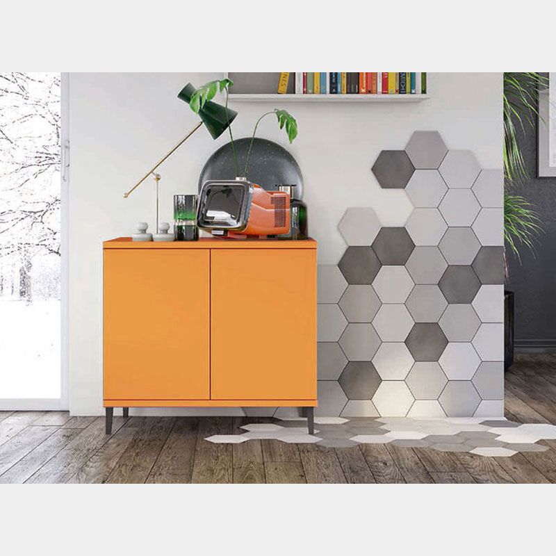 Madia moderna 2 ante con piedini in titanio, finitura Papaya
