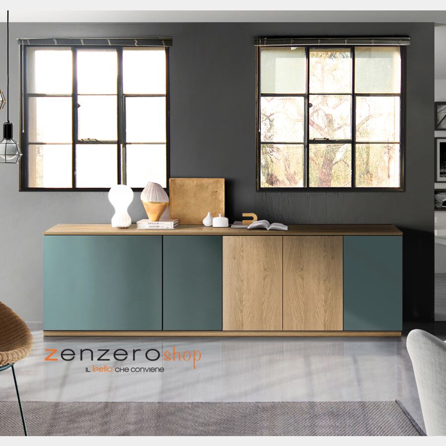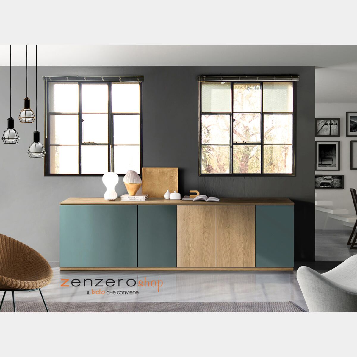 Madia moderna, Credenza di design, 5 ante, Rovere nodato e Bristol