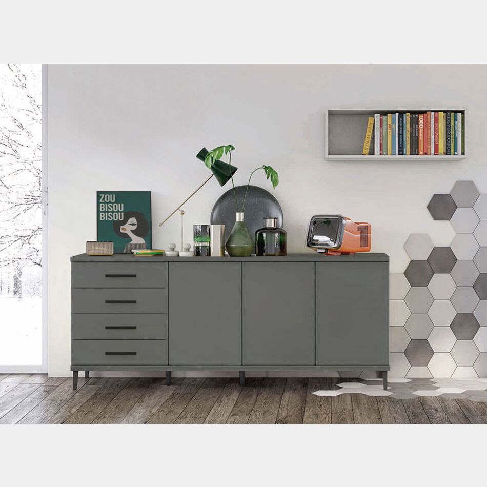 Madia moderna 3 ante 4 cassetti con piedini e scocca Grigio titanio