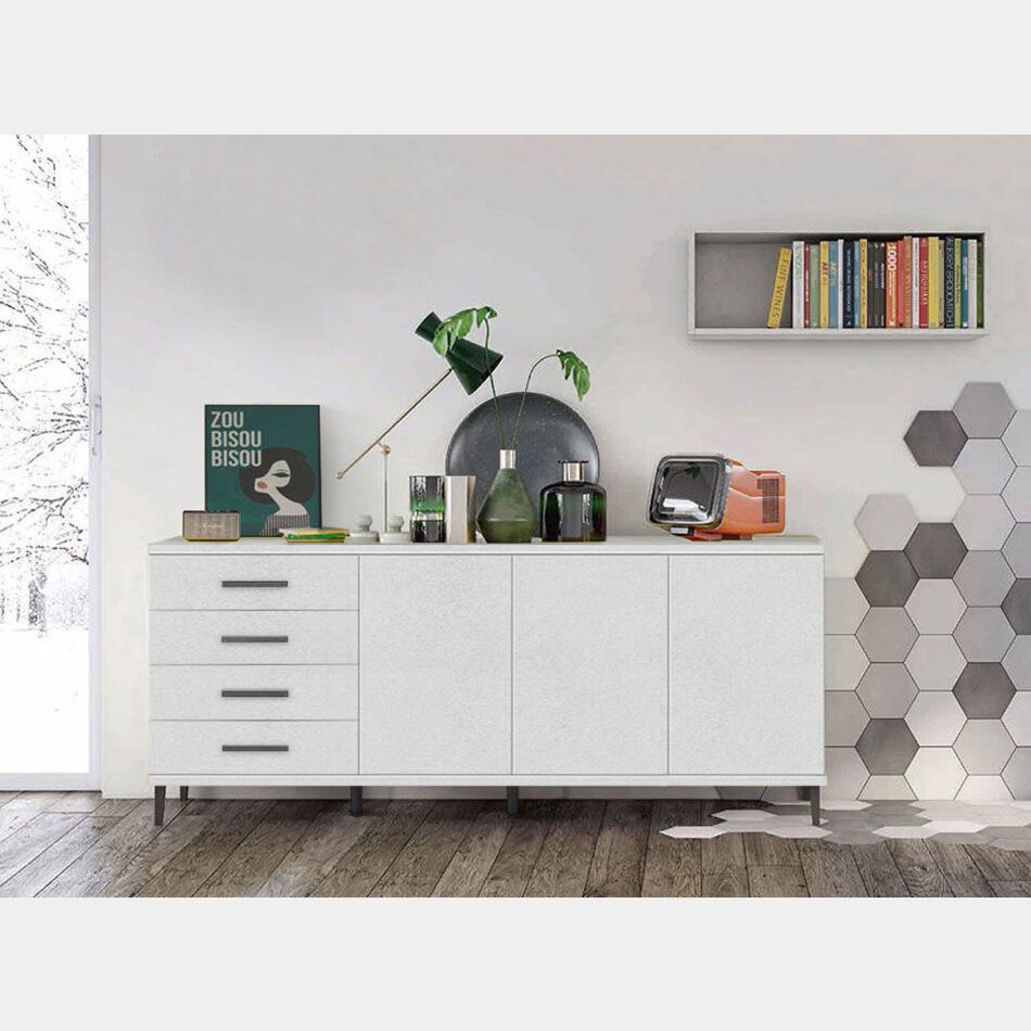 Madia moderna 3 ante 4 cassetti con piedini in titanio, finitura Cemento Artico