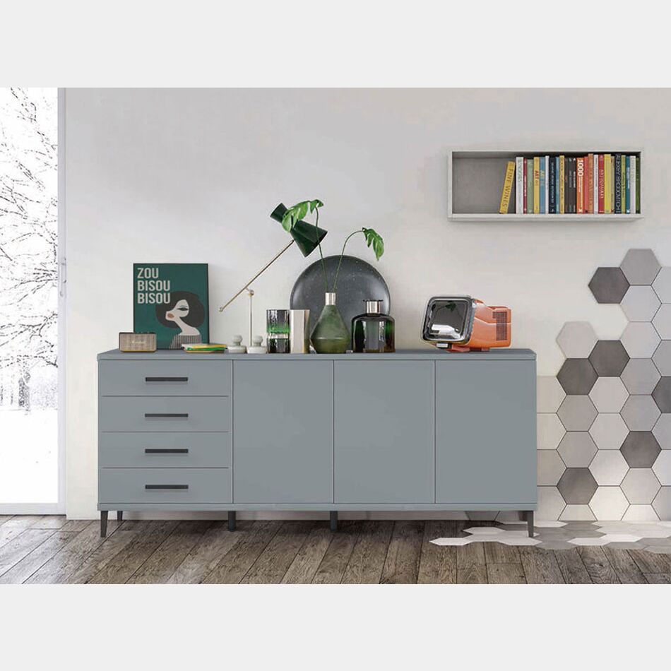 Madia moderna 3 ante 4 cassetti con piedini in titanio, finitura Cadaques