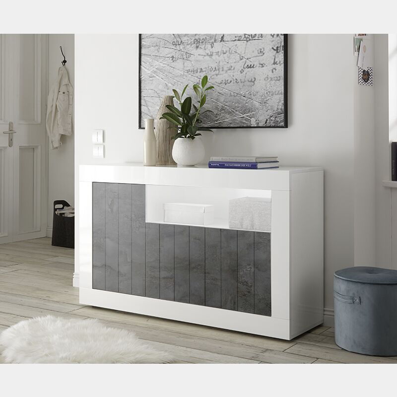 Madia moderna, 3 ante in finitura bianco lucido e ossido