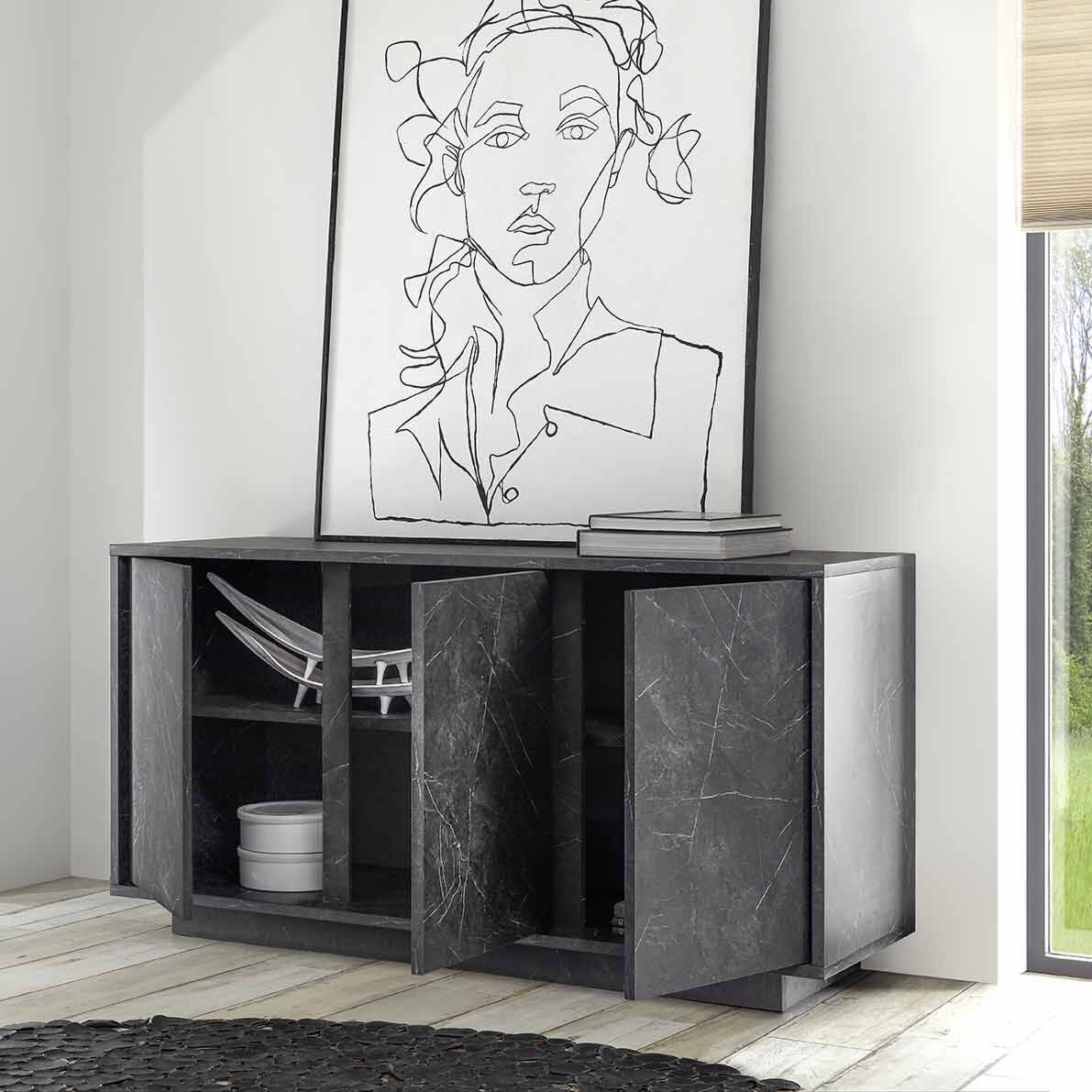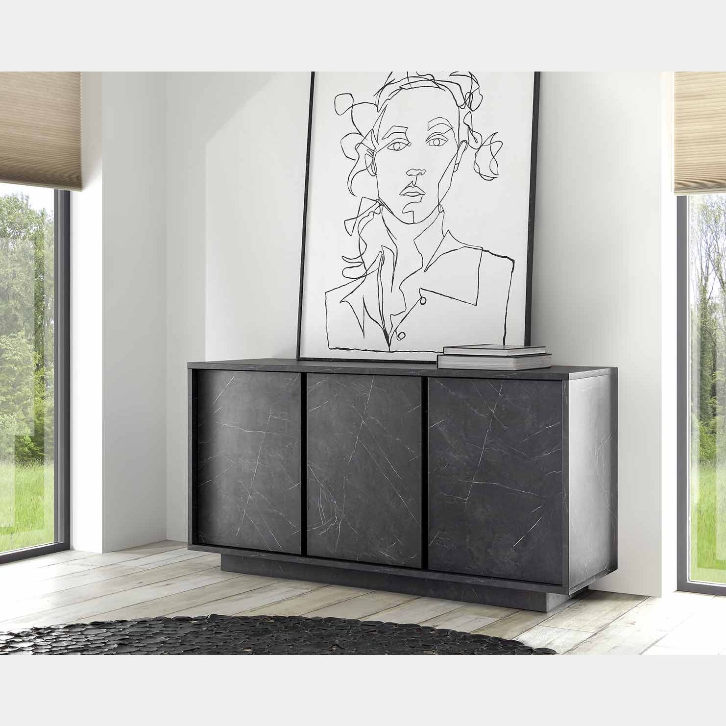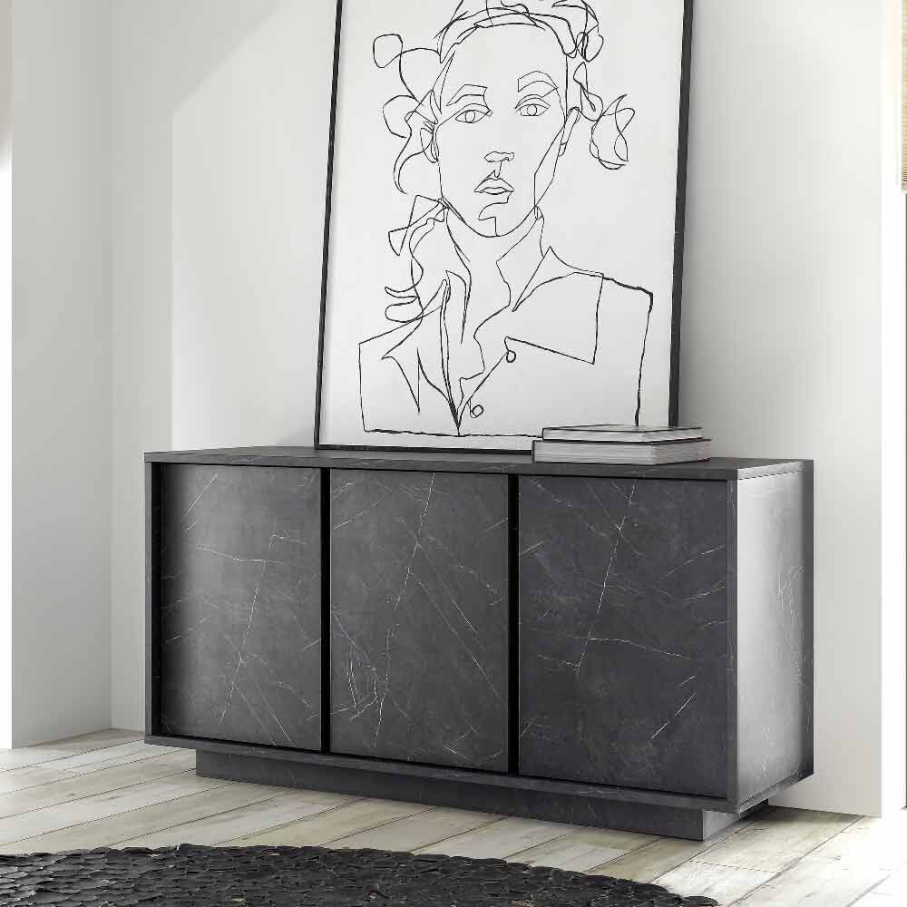 Madia 3 ante moderna, in finitura effetto Marmo Nero di Carrara