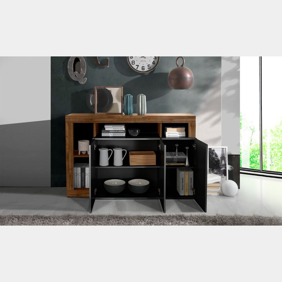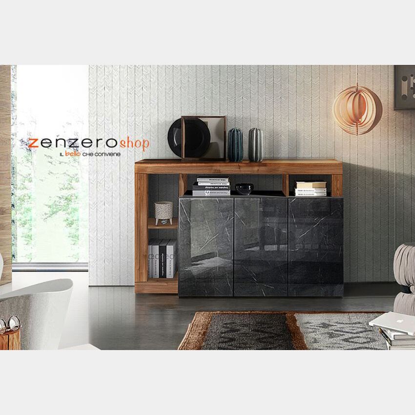 Madia a 3 ante in finitura Marmo Lucido Nero e Noce Dark. Questa madia si abbina a tutti gli ambienti grazie alle tonalità di colore e al suo design insolito.