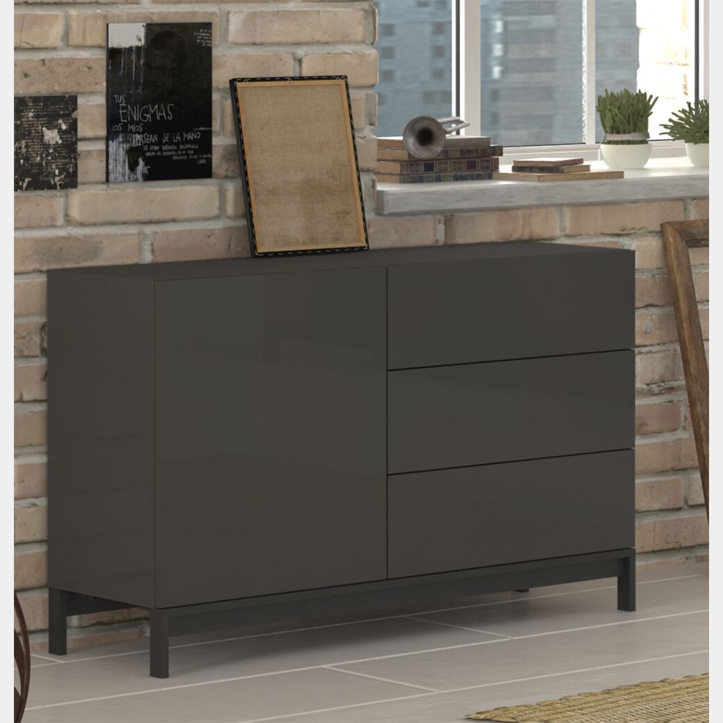 Madia moderna, 3 cassetti 1 anta in finitura antracite lucido