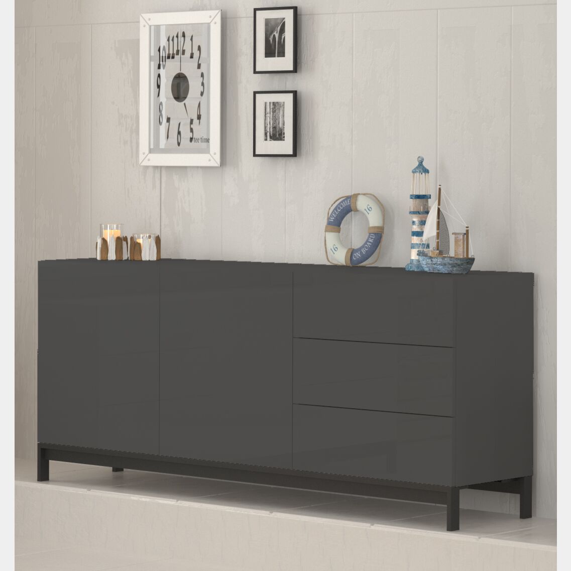 Madia moderna, 3 cassetti 2 ante in finitura antracite lucido
