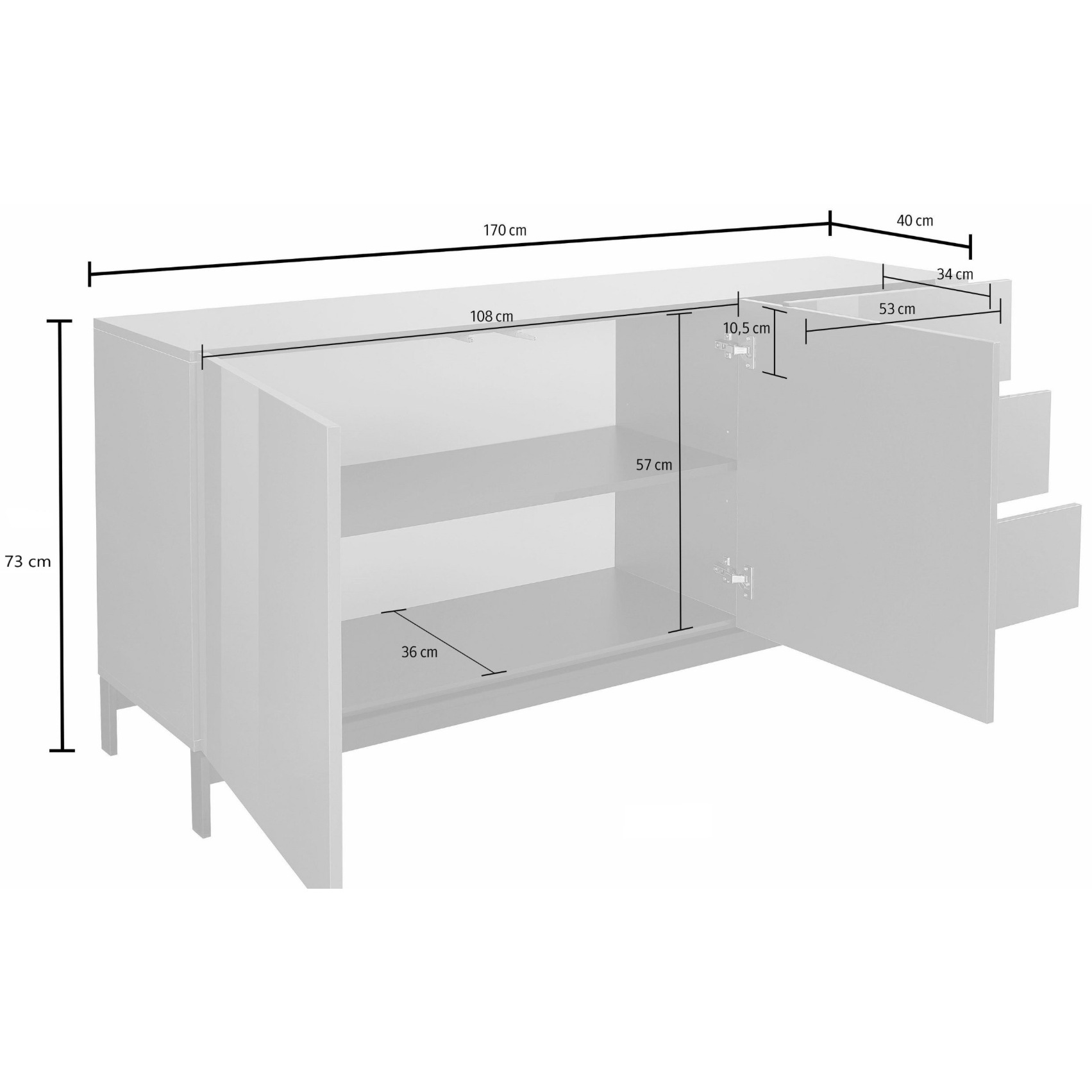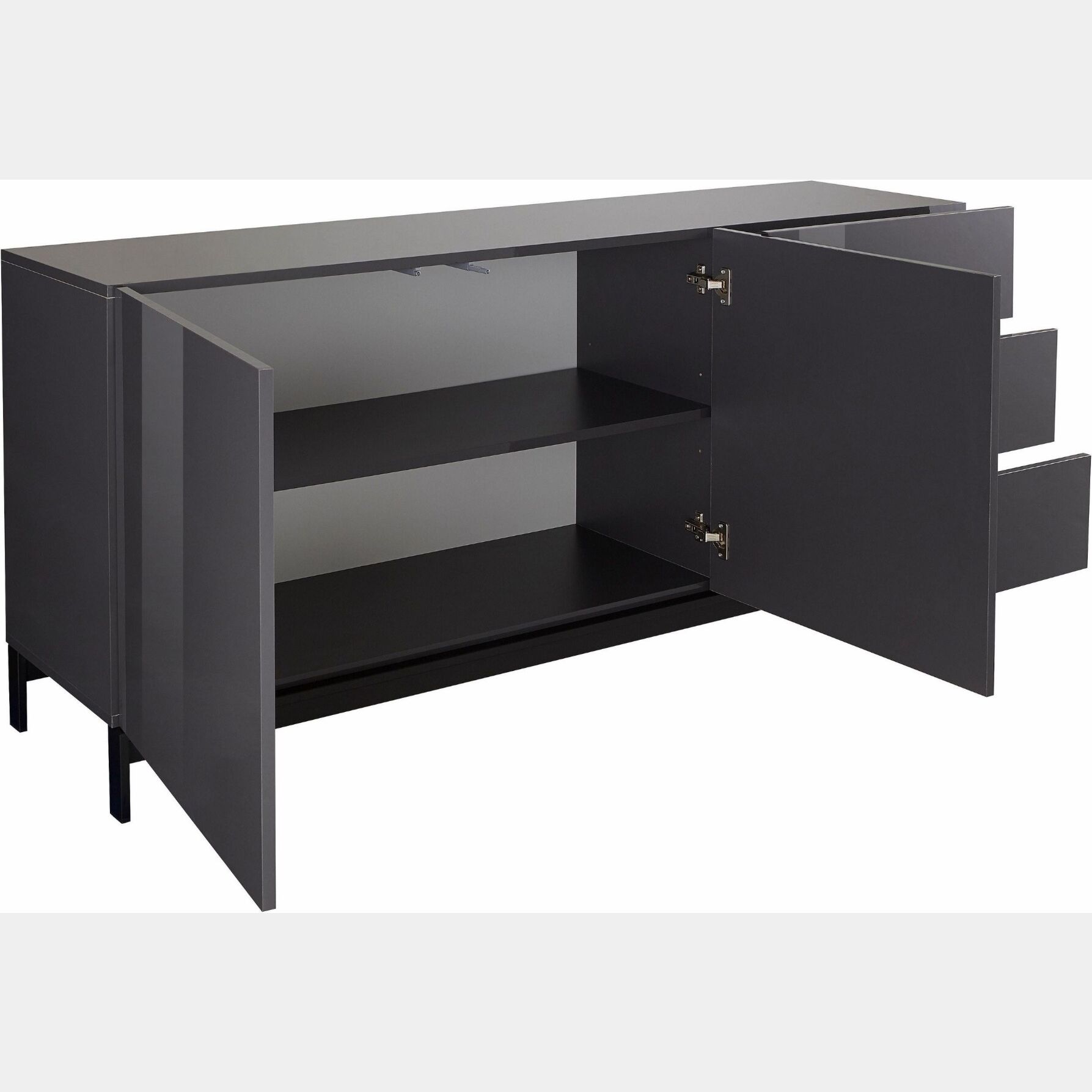 Madia di design 3 cassetti 2 ante in finitura antracite lucidoL'aspetto completamente elegante di questa madia moderna convince già a prima vista. Le sue forme squadrate e contenute sono ideali per piccoli spazi. Inoltre, porte e cassetti sono dotati dell'apertura push-pull, agevolandone l'apertura. La qualità del materiale in legno certificato FSC®. Le gambe della madia invece sono in metallo finitura nera.