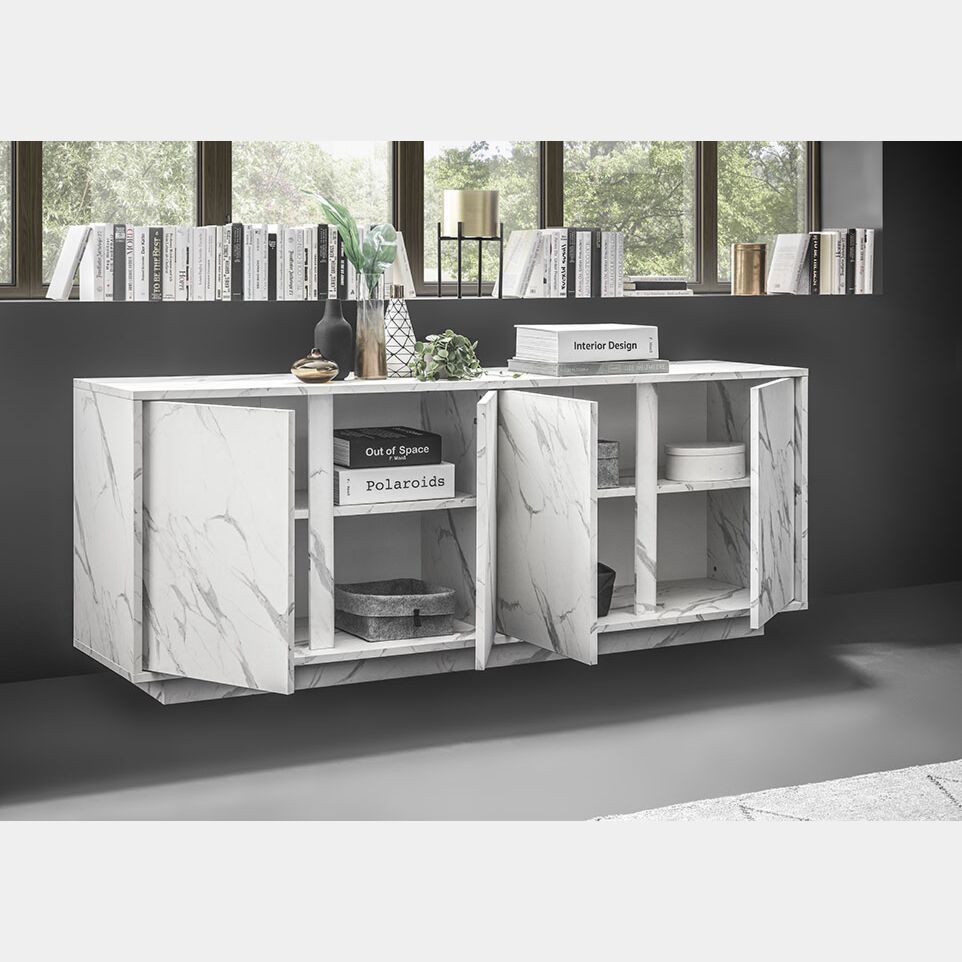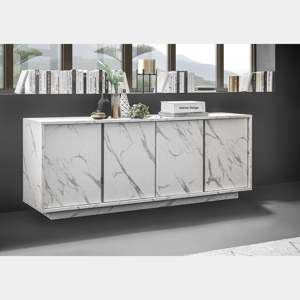 Madia moderna, 4 ante in finitura effetto Marmo Bianco di Carrara