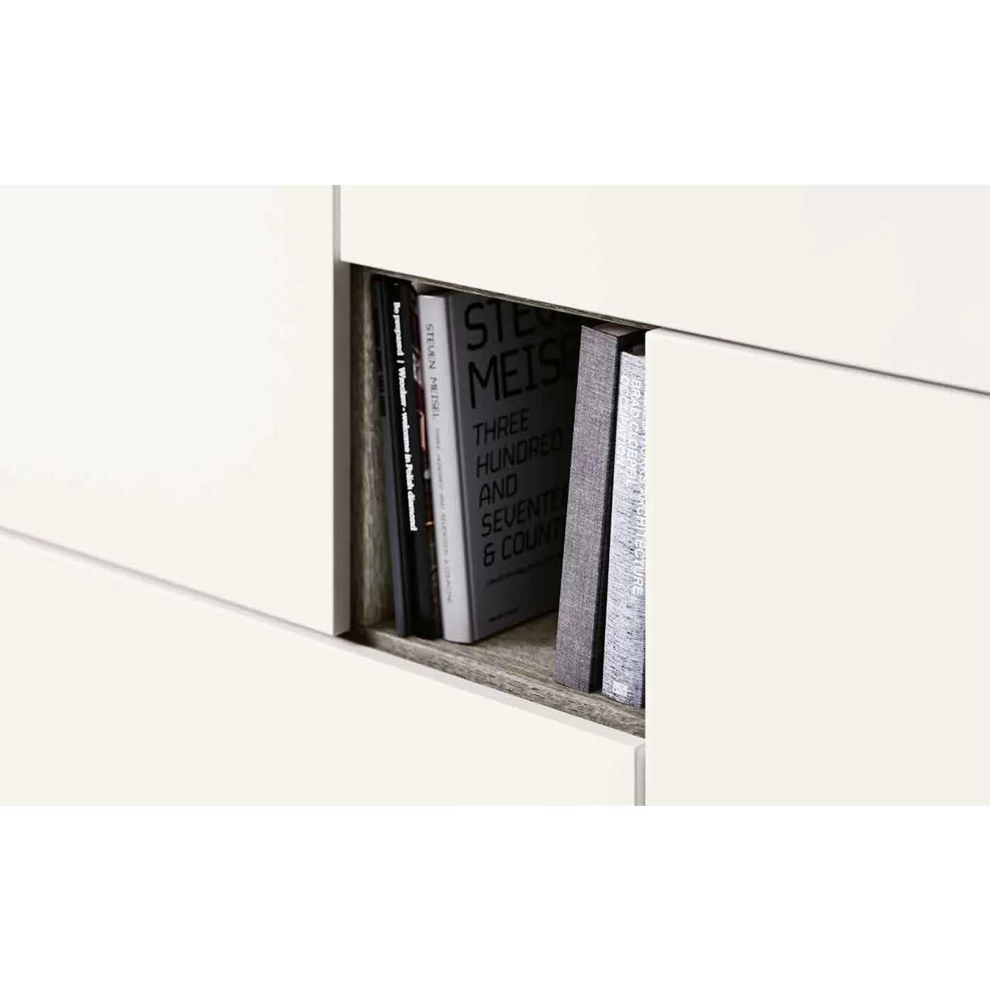 Le finitura Rovere gesso per struttura e Bianco opaco per frontali possono essere personalizzate tramite configuratore, optando per altre tinte materiche e lisce che ben si adattano al proprio gusto e stile.