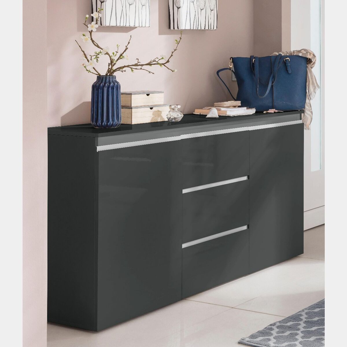 Madia moderna Antracite con maniglie a gola, 2 ante 3 cassetti