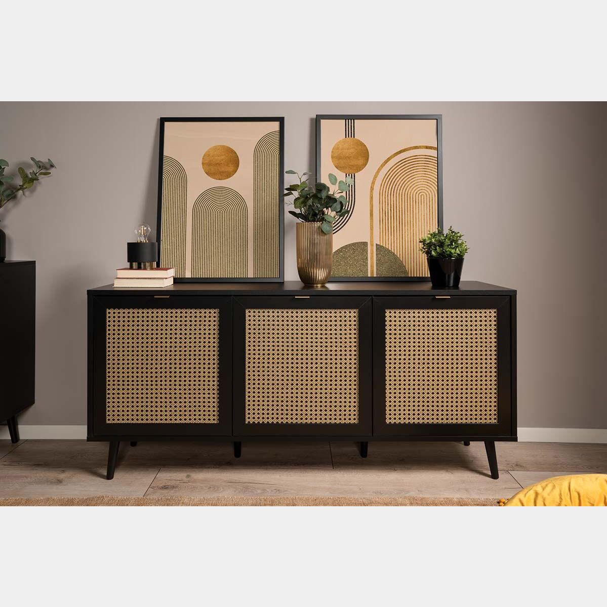 Madia moderna Arendal con 3 ante in finitura Nero opaco con dettagli Oro