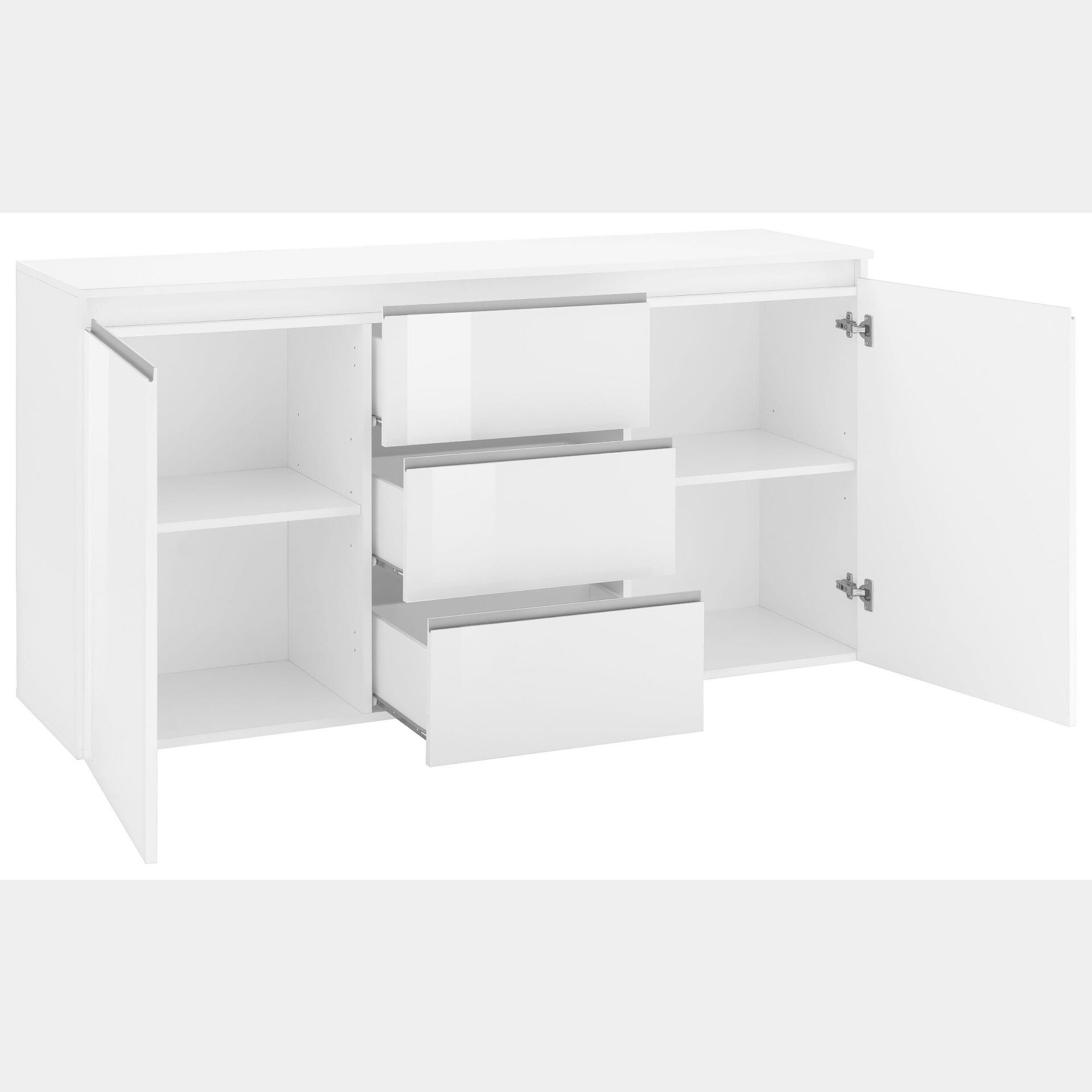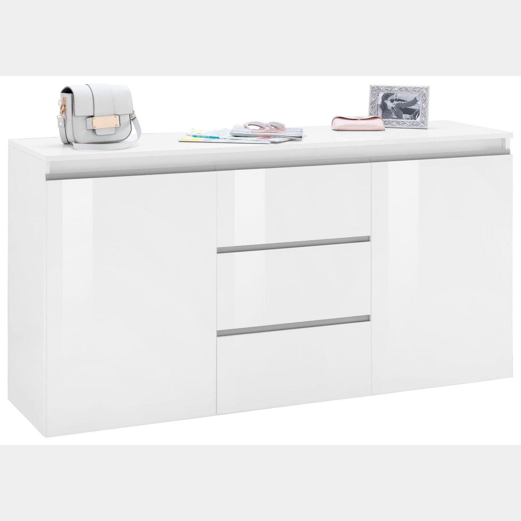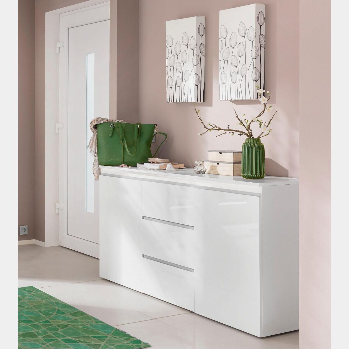 Madia moderna Bianco laccato lucido con maniglie a gola, 2 ante 3 cassetti