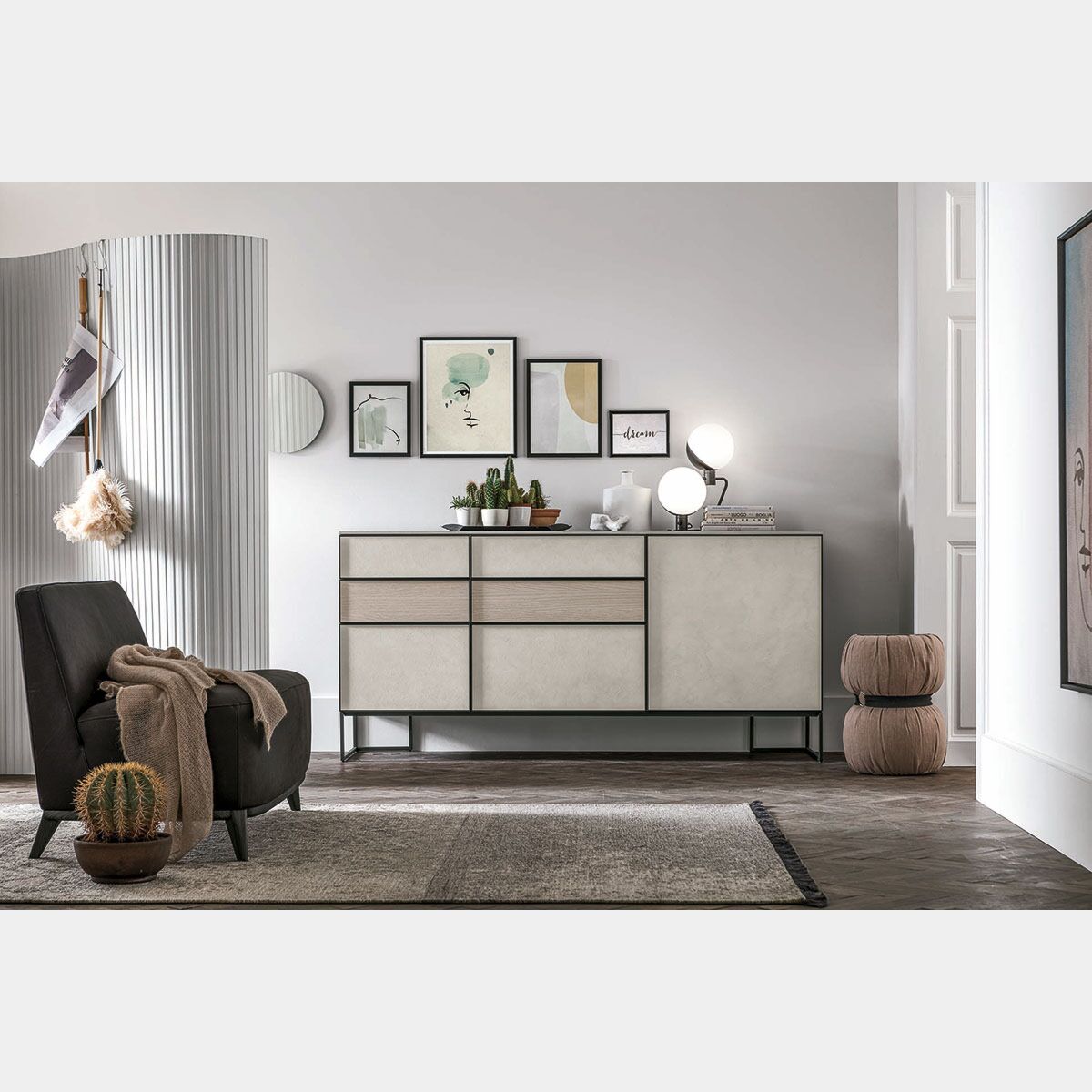 Caratteristica fondamentale della madia è la sua versatilità: grazie alla possibilità di personalizzare le finiture e grazie alle sue dimensioni può essere inserita in diversi contesti moderni, come ad esempio un living, un open space ma anche un ambiente neutro come un corridoio o ingresso.
