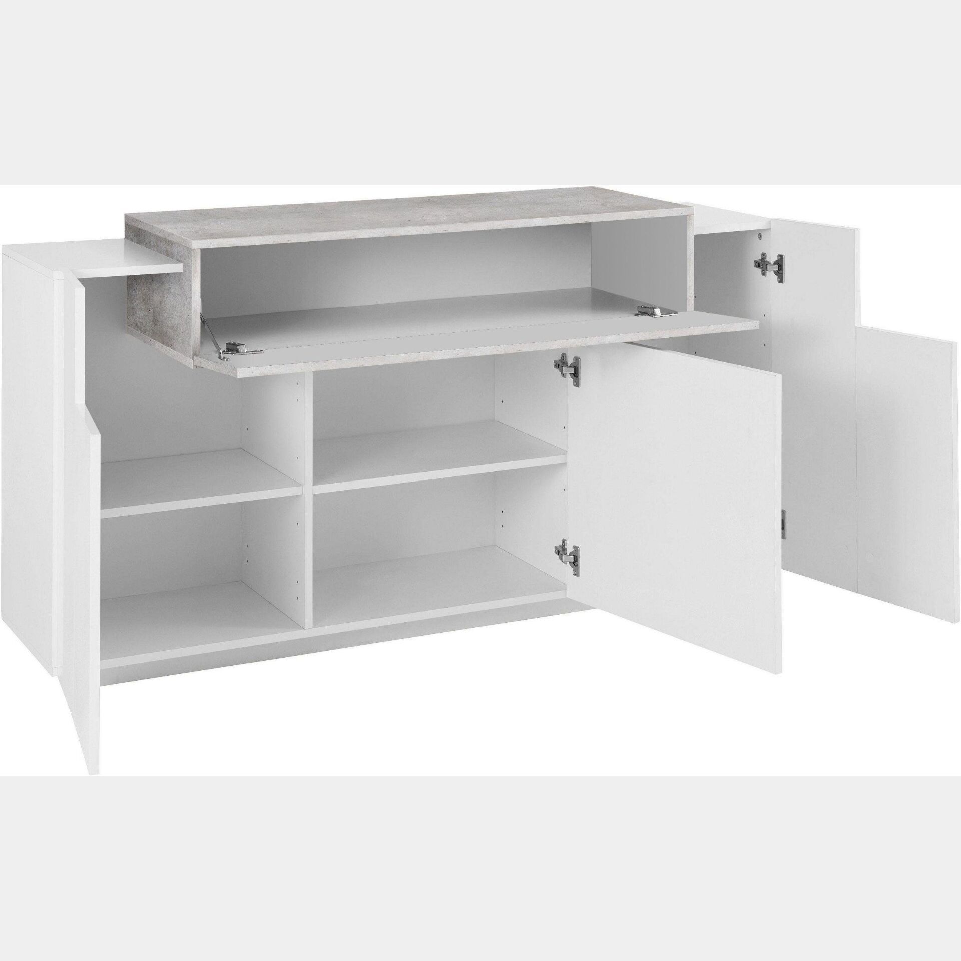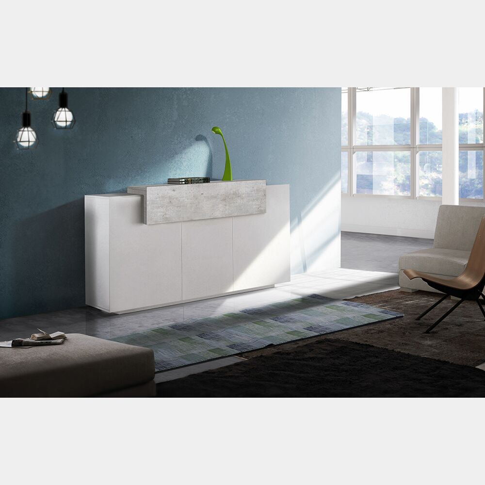 Madia moderna Cemento e Bianco lucido, 3 ante e una ribalta