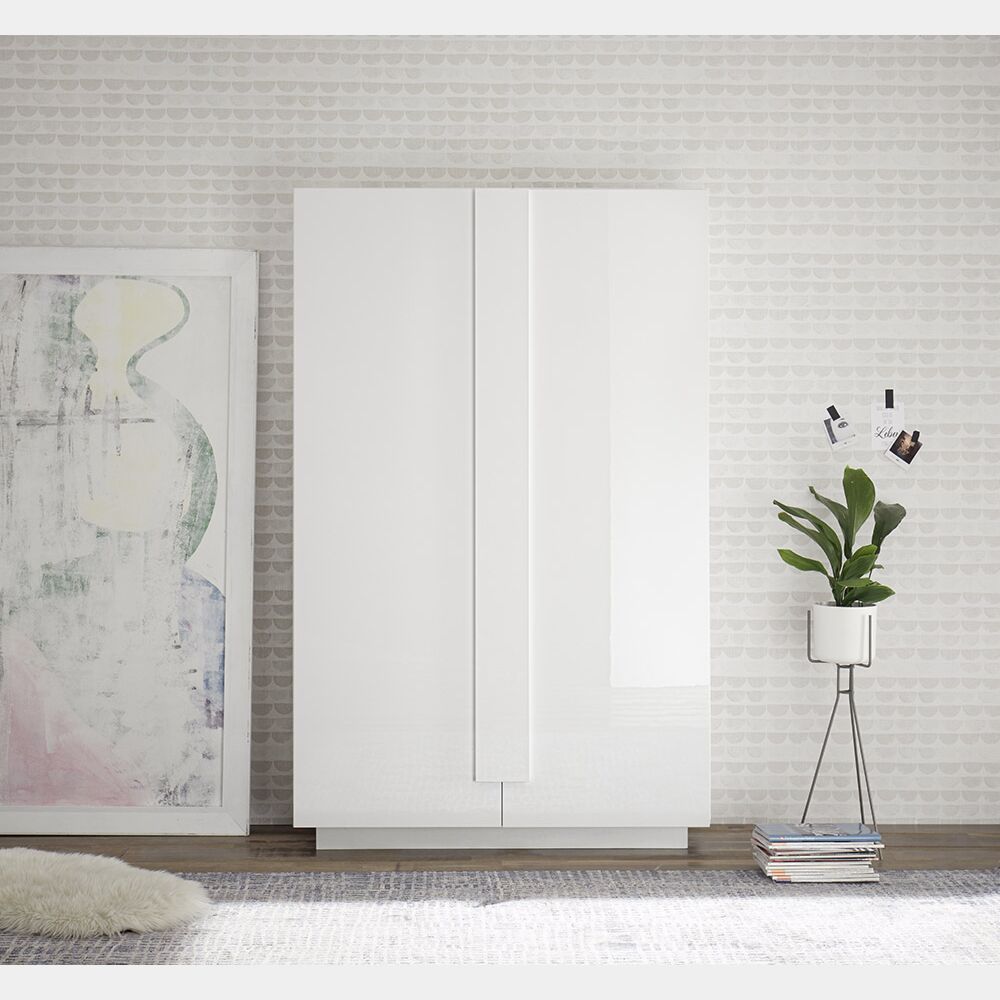 Madia moderna, colonna 2 ante in finitura Bianco laccato lucido