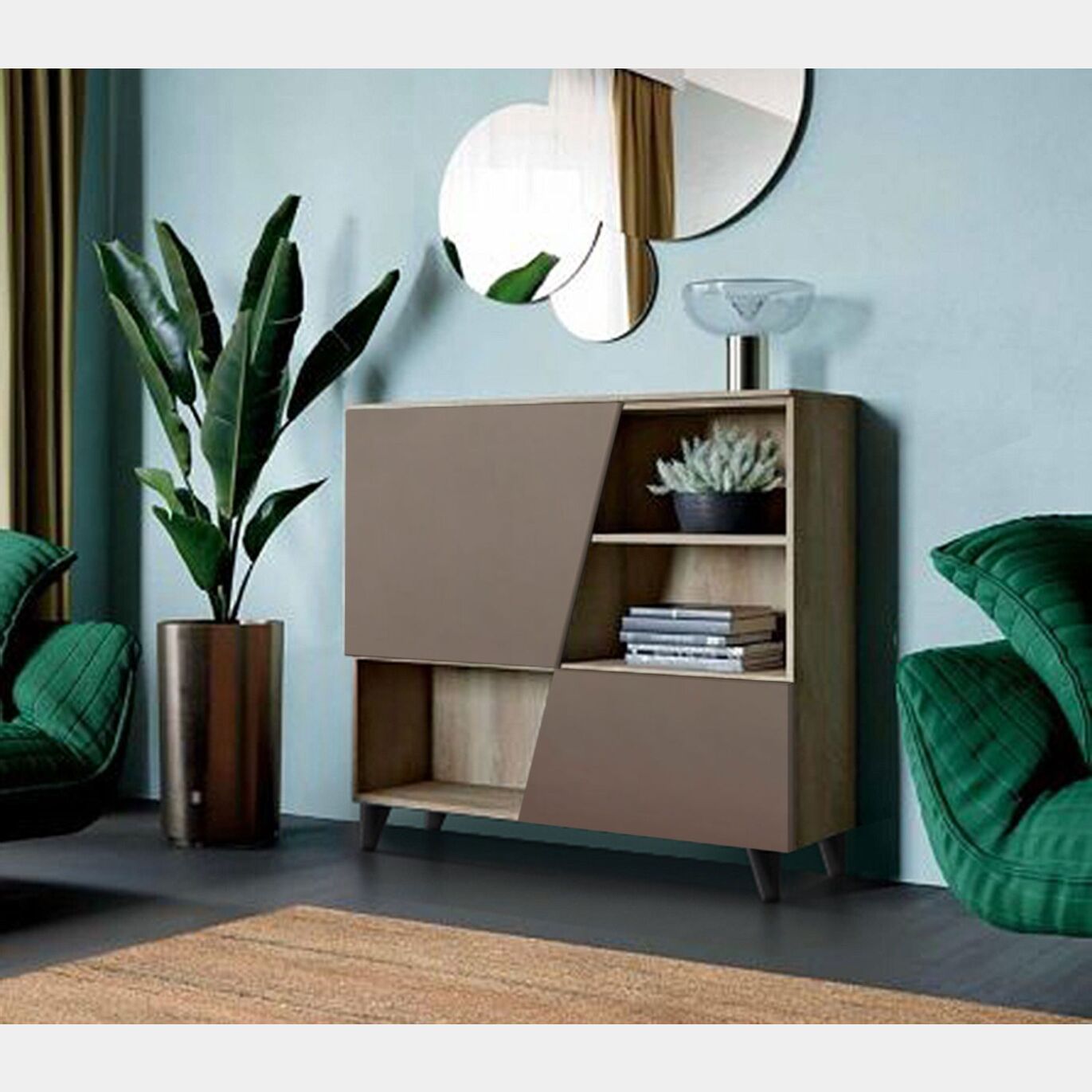 Madia moderna con 2 ante, 1 vano e un ripiano in finitura Bronzo e Quercia