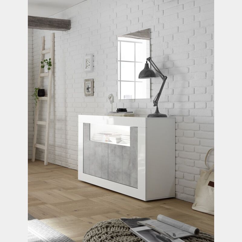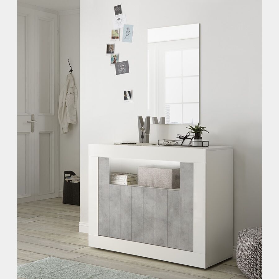 Madia moderna con 2 ante in finitura Cemento e Bianco Lucido