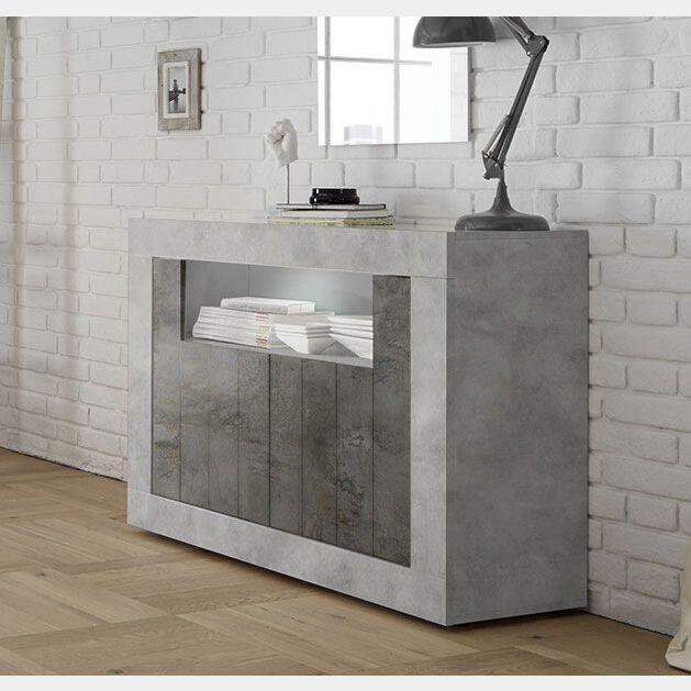 Madia moderna, 2 ante in finitura cemento e ossido.La madia moderna unisce l'eleganza del design italiano e il fascino moderno offrendo così un risultato estremamente chic e rendendo la vostra zona living di tendenza.