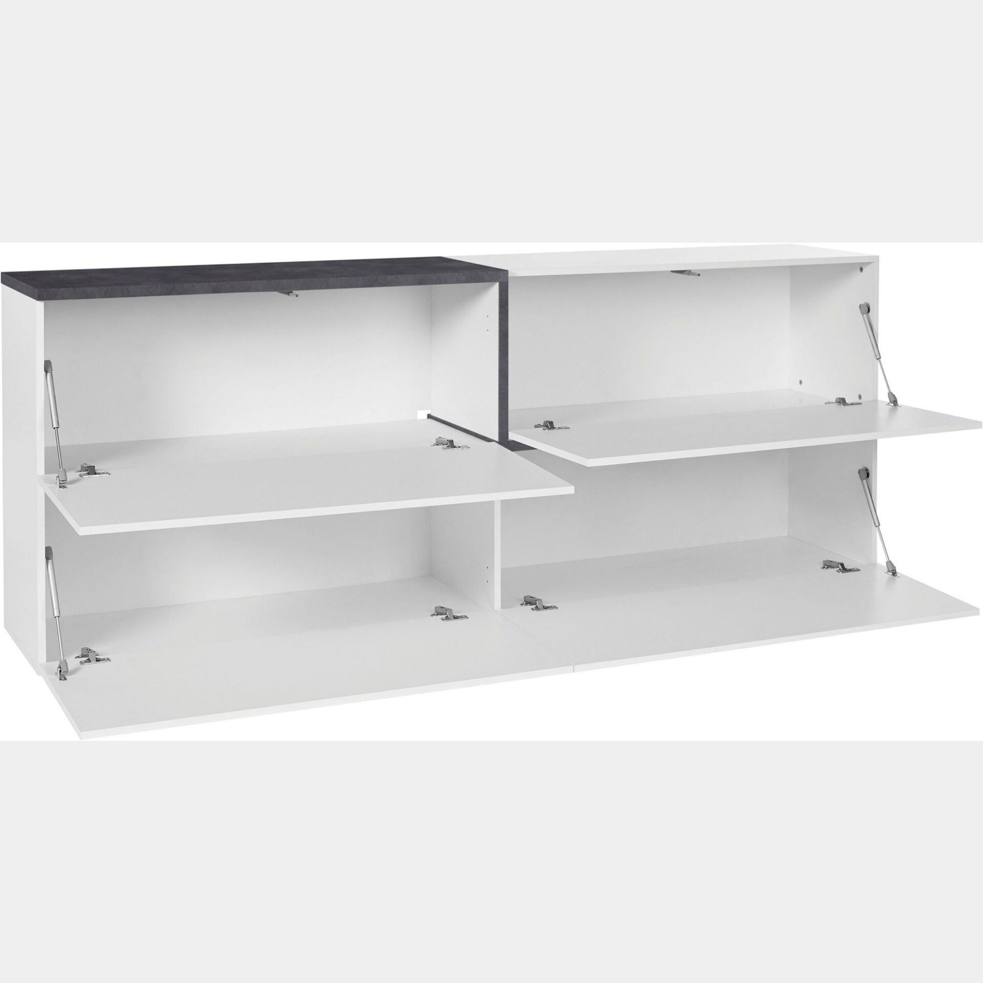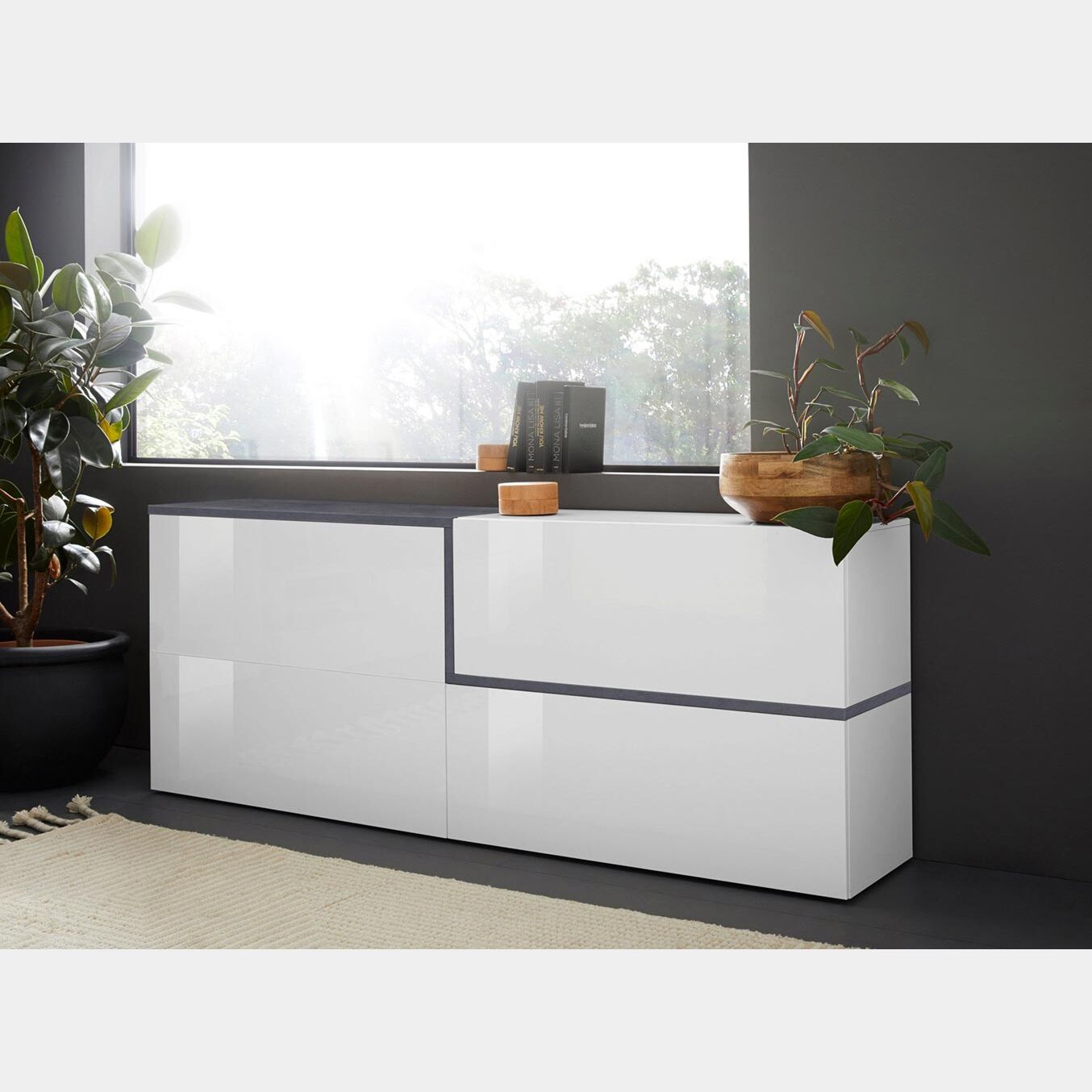 Madia moderna con 4 ribalte in finitura Bianco lucido e Ardesia