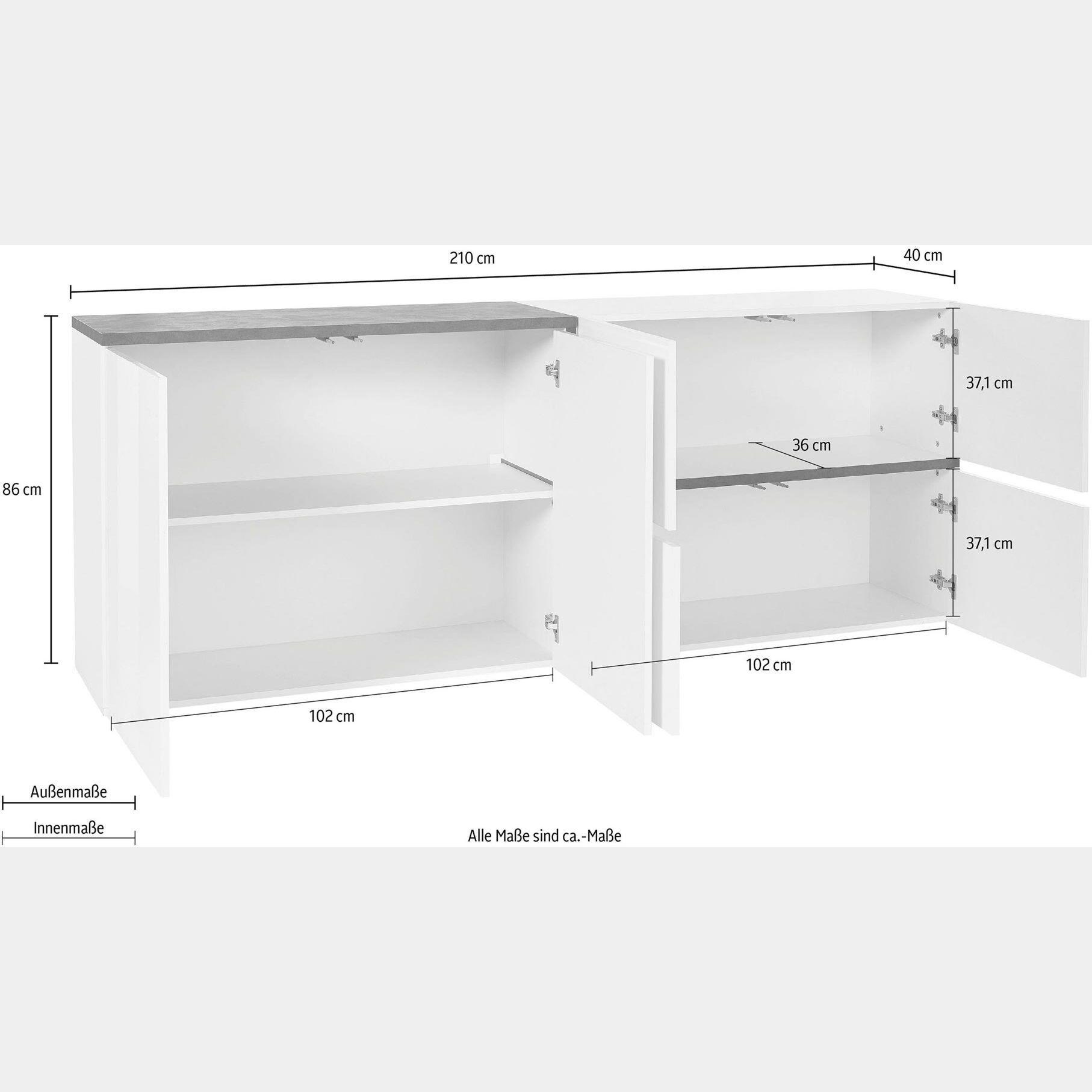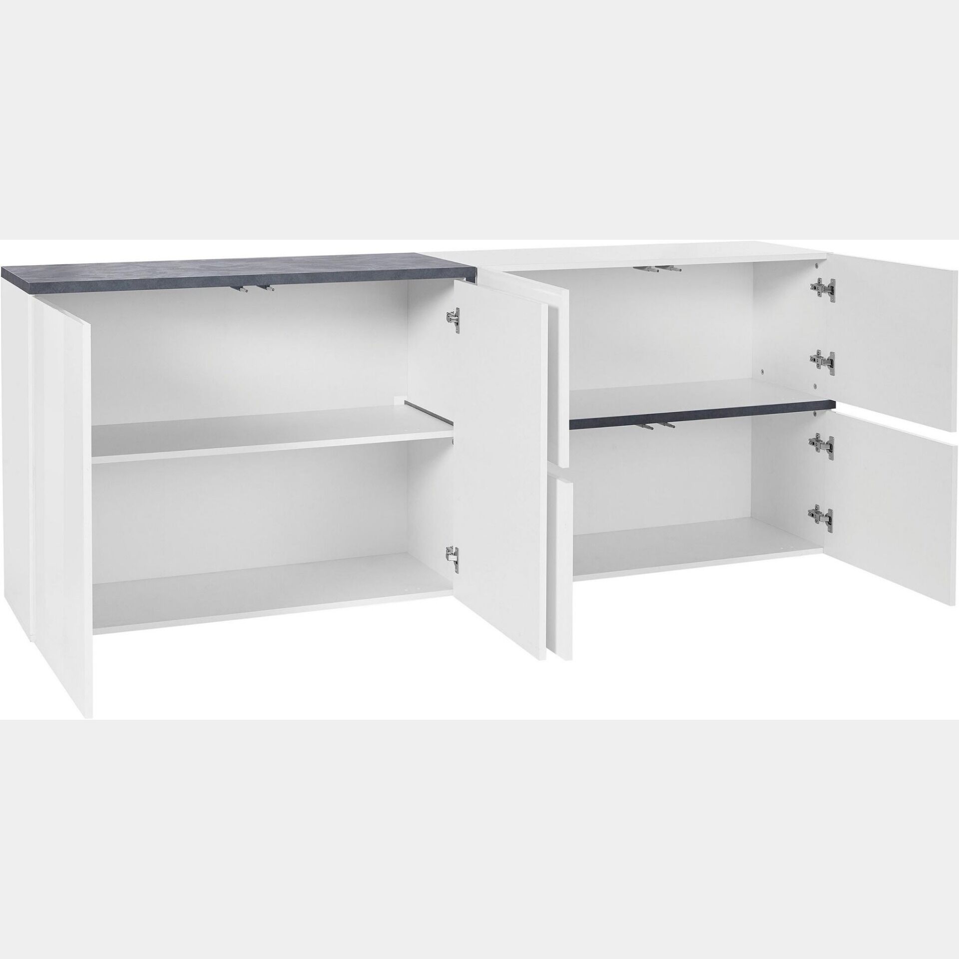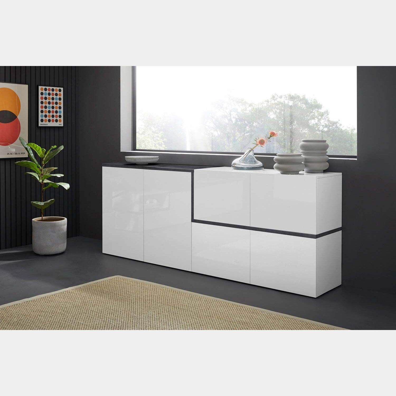 Madia moderna con 4 ante in finitura Bianco lucido e Ardesia L.210
