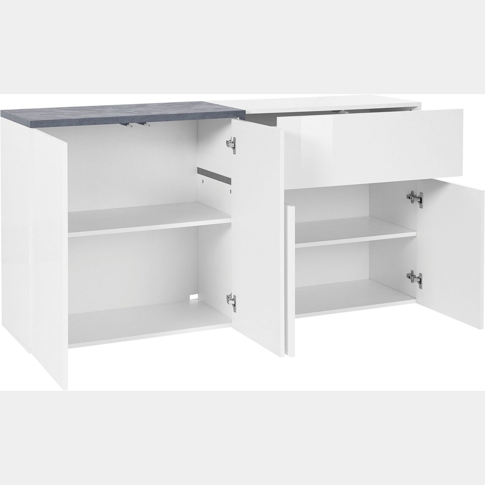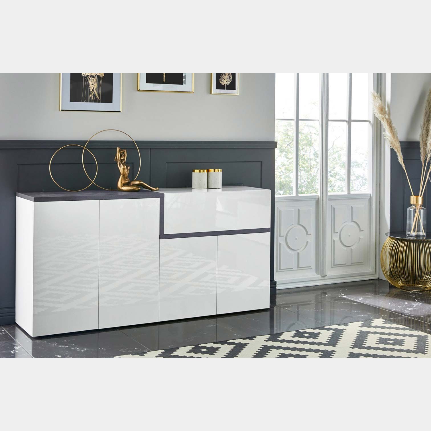 Madia moderna con 4 ante e 1 cassetto in finitura Bianco lucido e Ardesia