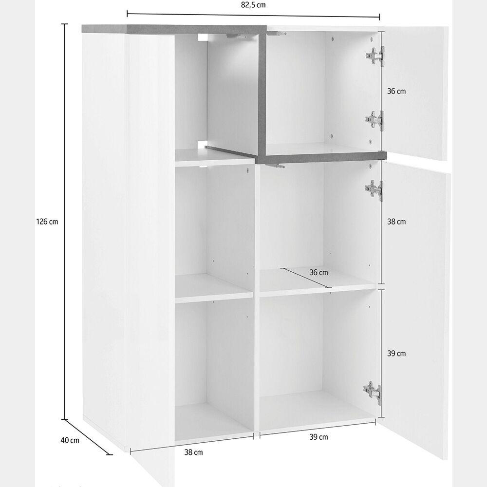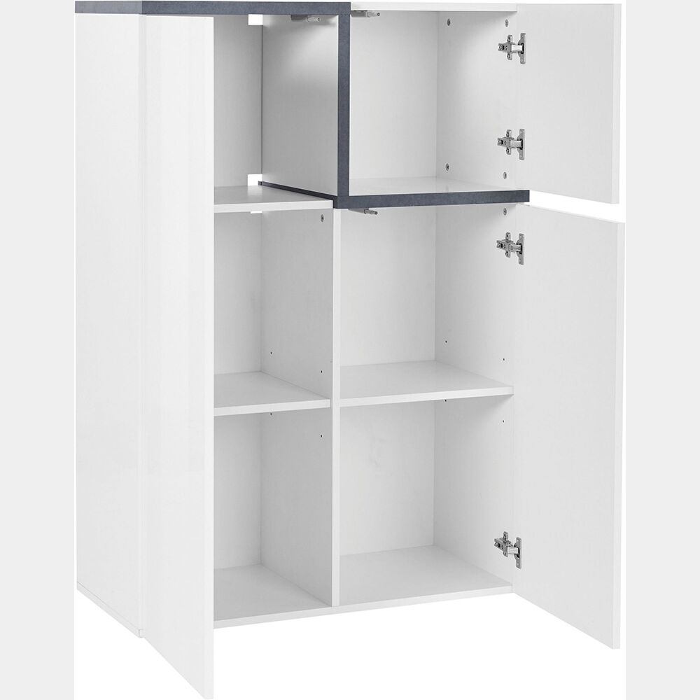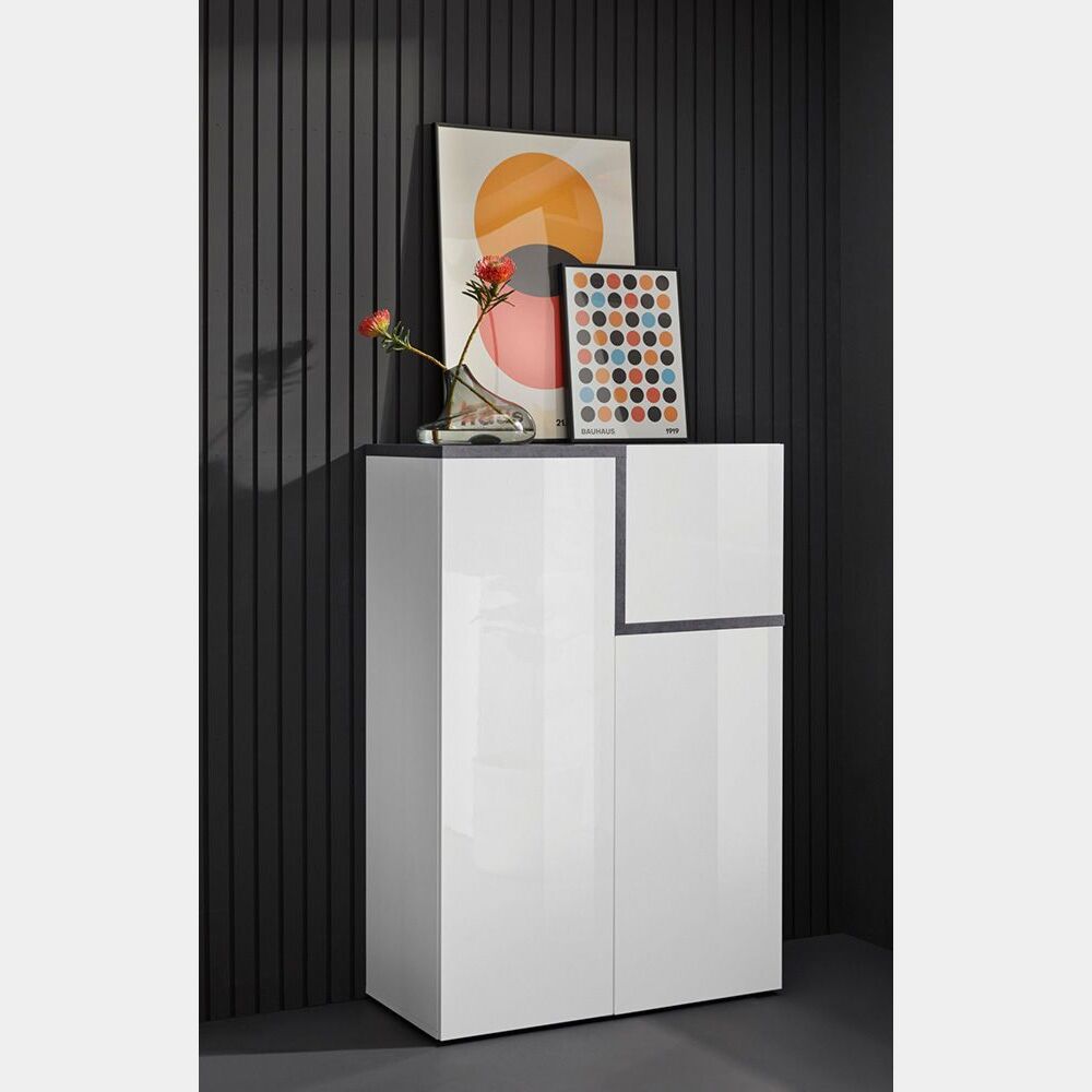 Madia alta con 3 ante in finitura bianco lucido, profili ardesia