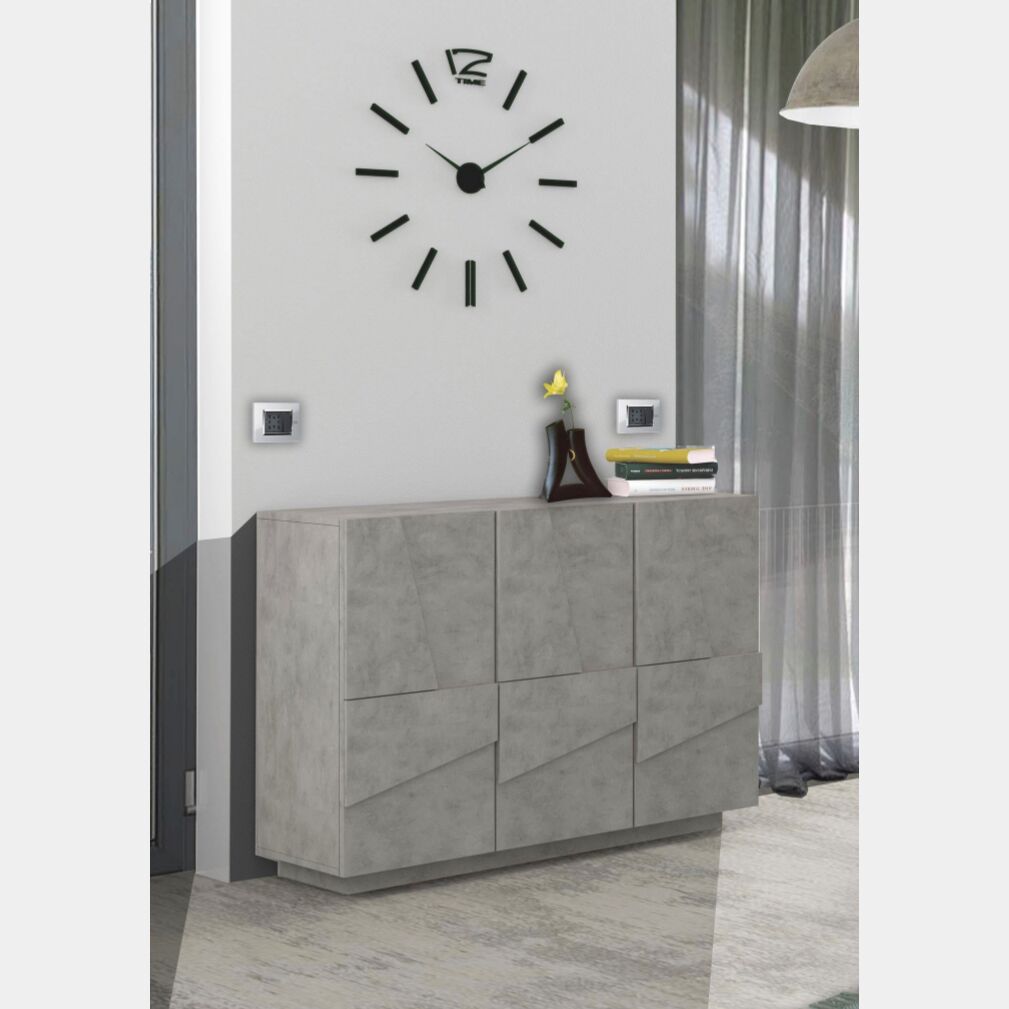 Madia moderna con 3 ante dal disegno geometrico in finitura Beton