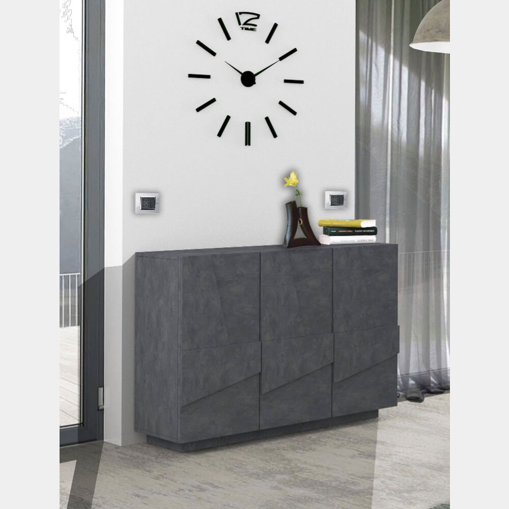 Madia moderna con 3 ante dal disegno geometrico in finitura Ardesia