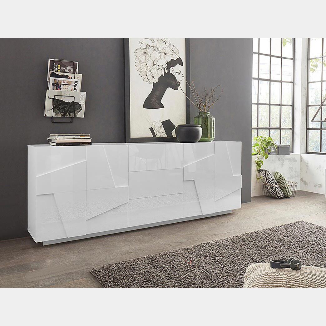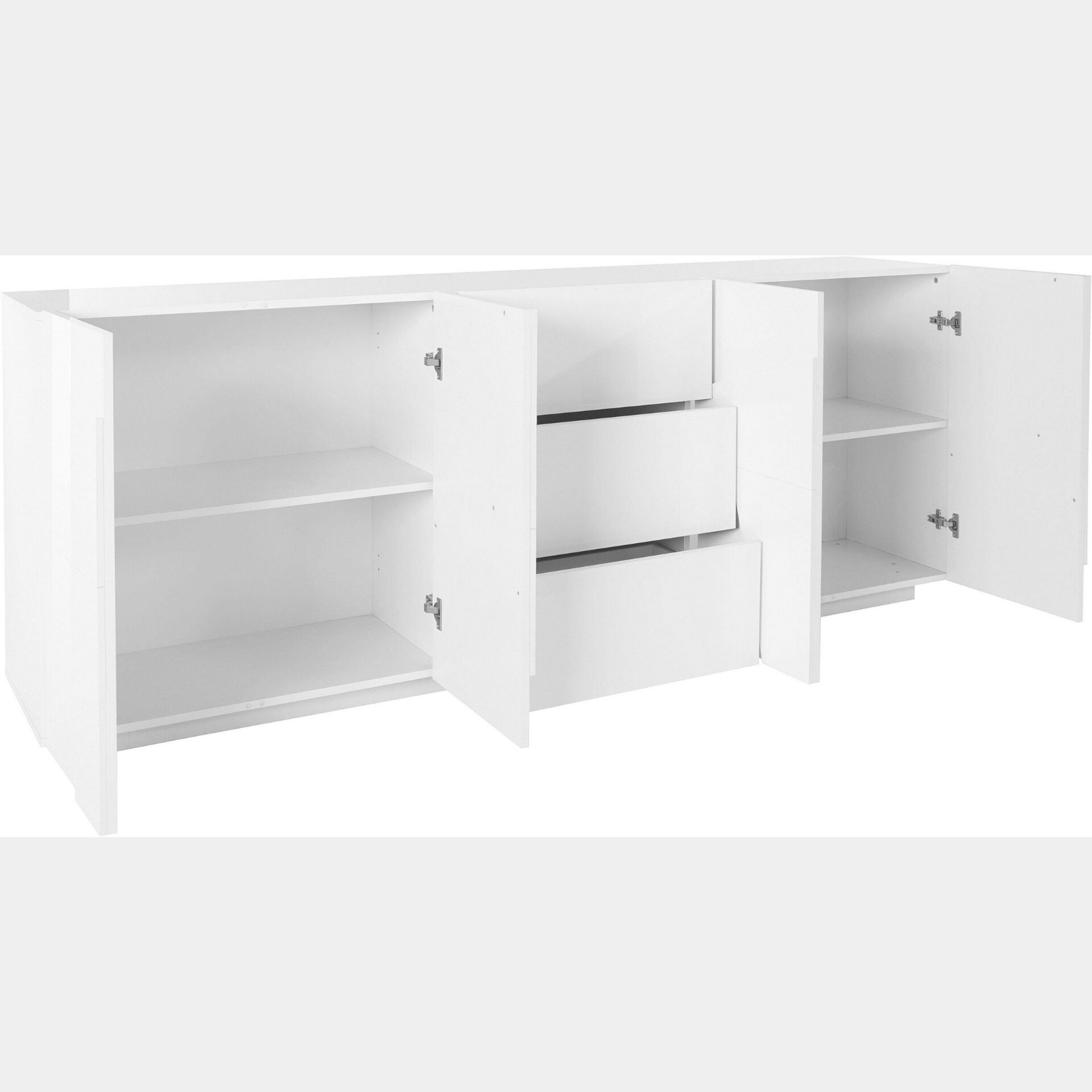 Madia moderna 4 ante, 3 cassetti in finitura bianco lucido