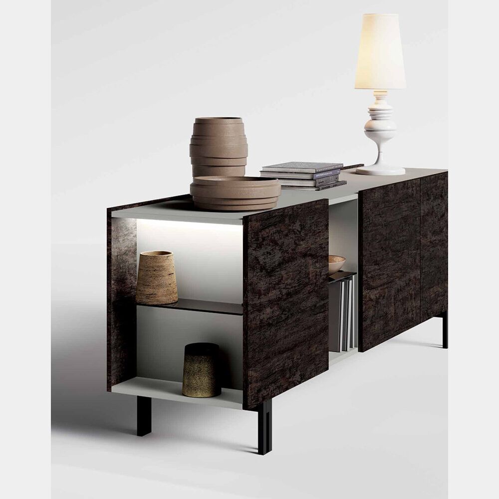 Madia moderna di alta qualità con 3 ante e 3 ripiani in finitura Grigio seta e Legno bruciato