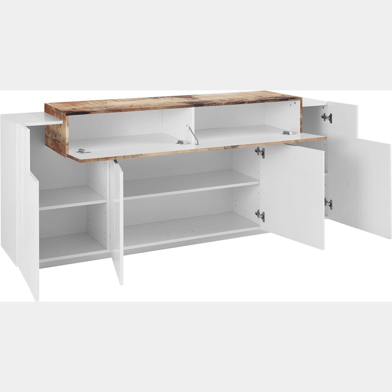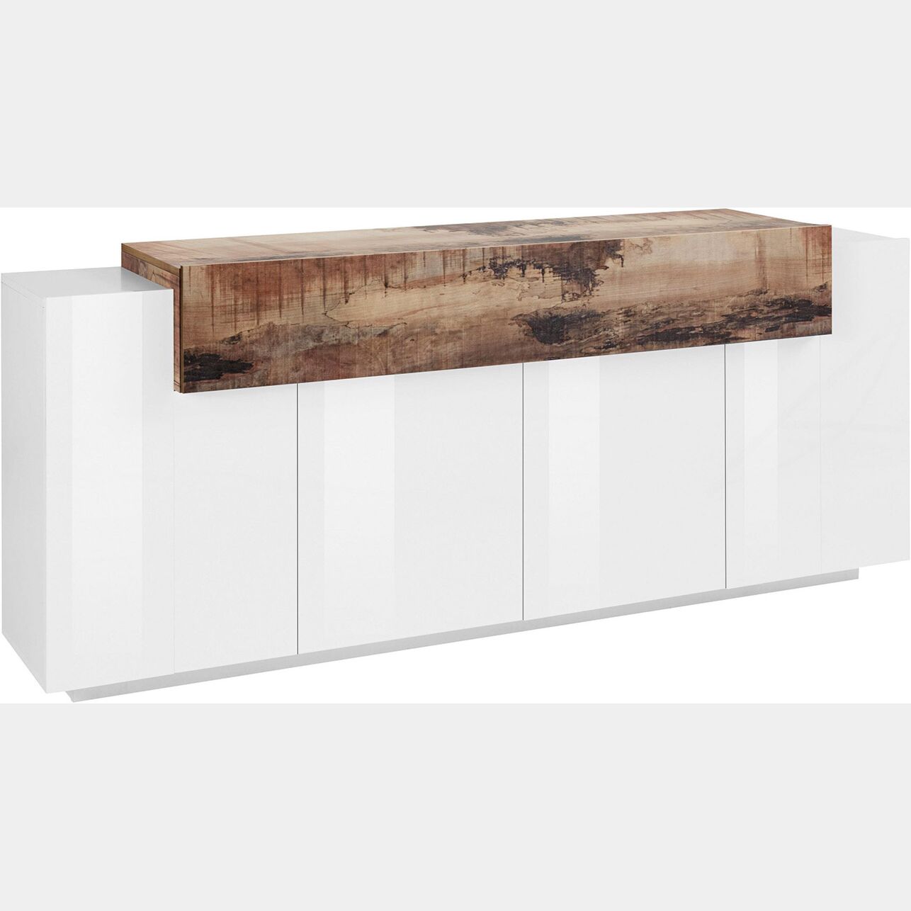 Madia moderna di design con ribalta in finitura Bianco lucido e Pero