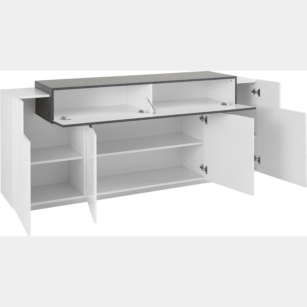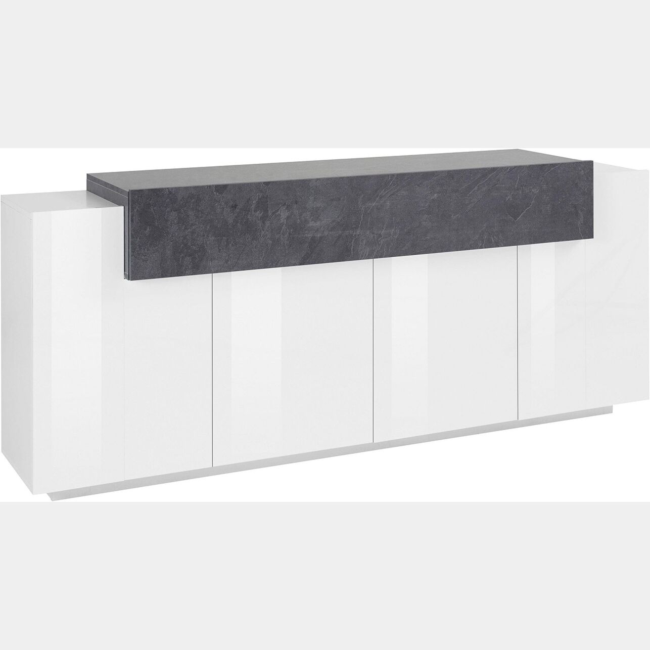 Madia moderna di design con ribalta in finitura Bianco lucido e Ardesia