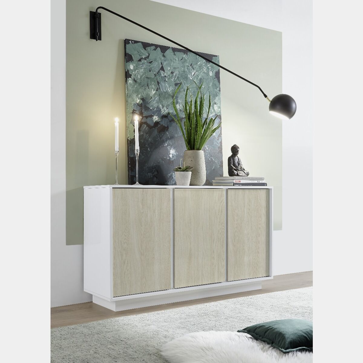 Madia moderna Luminosa olmo e bianco lucido a 3 ante