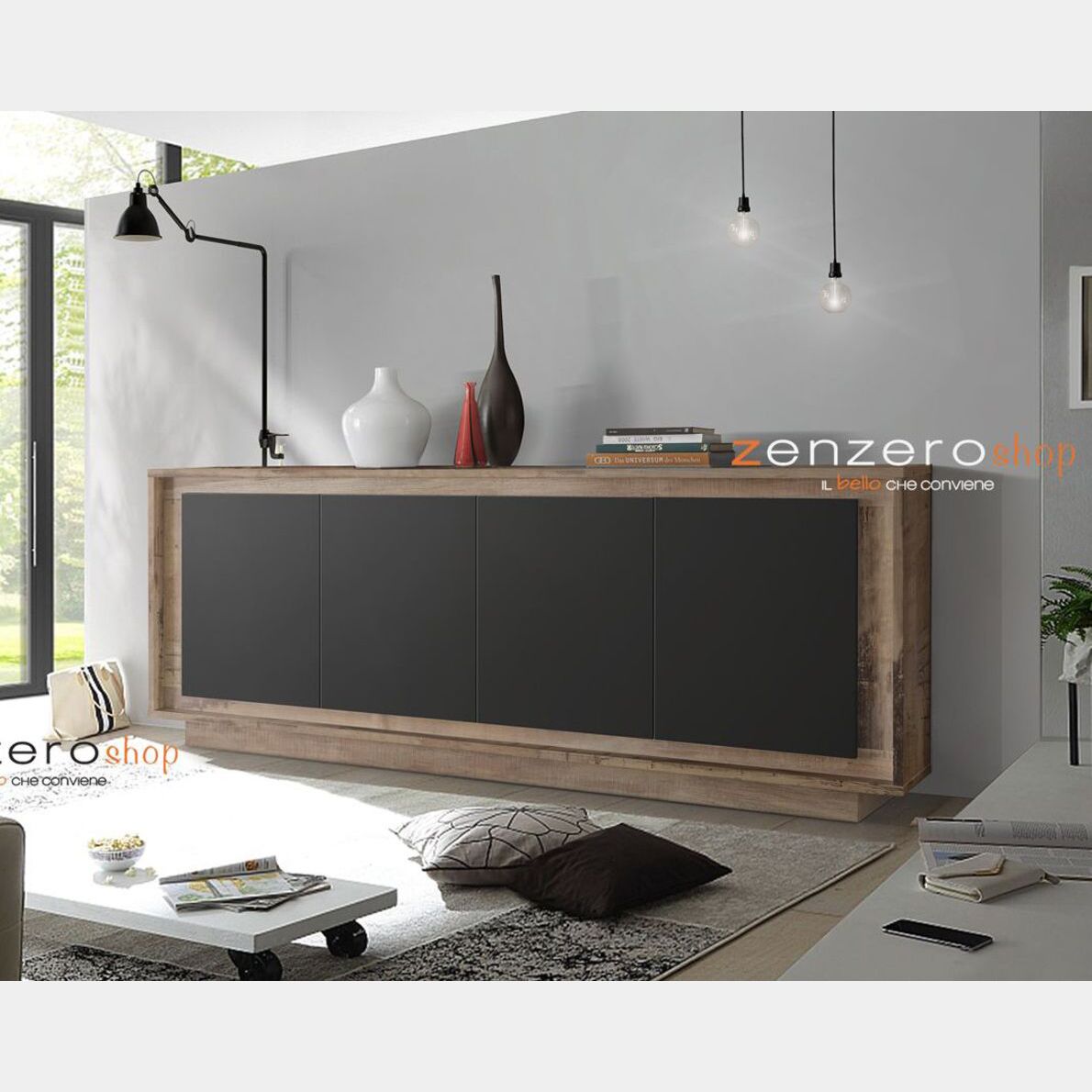 Madia moderna nera e pero, madia Pedro 4 ante