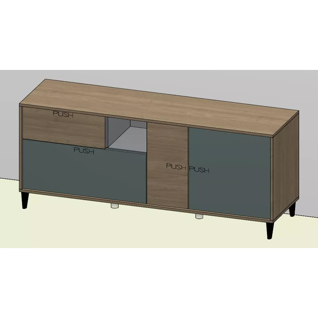 Madia moderna per soggiorni in finitura Noce biondo e Salvia