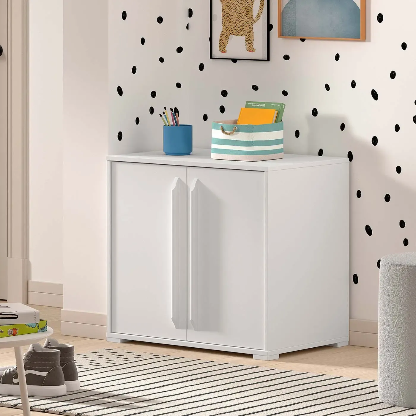 Questa cassettiera a 2 ante con finitura Bianca può essere utilizzata separatamente, ma si abbina perfettamente anche al letto a soppalco di questa collezione. Questo pratico mobile con un ripiano interno offre ampio spazio per riporre libri, materiale scolastico, giocattoli,...