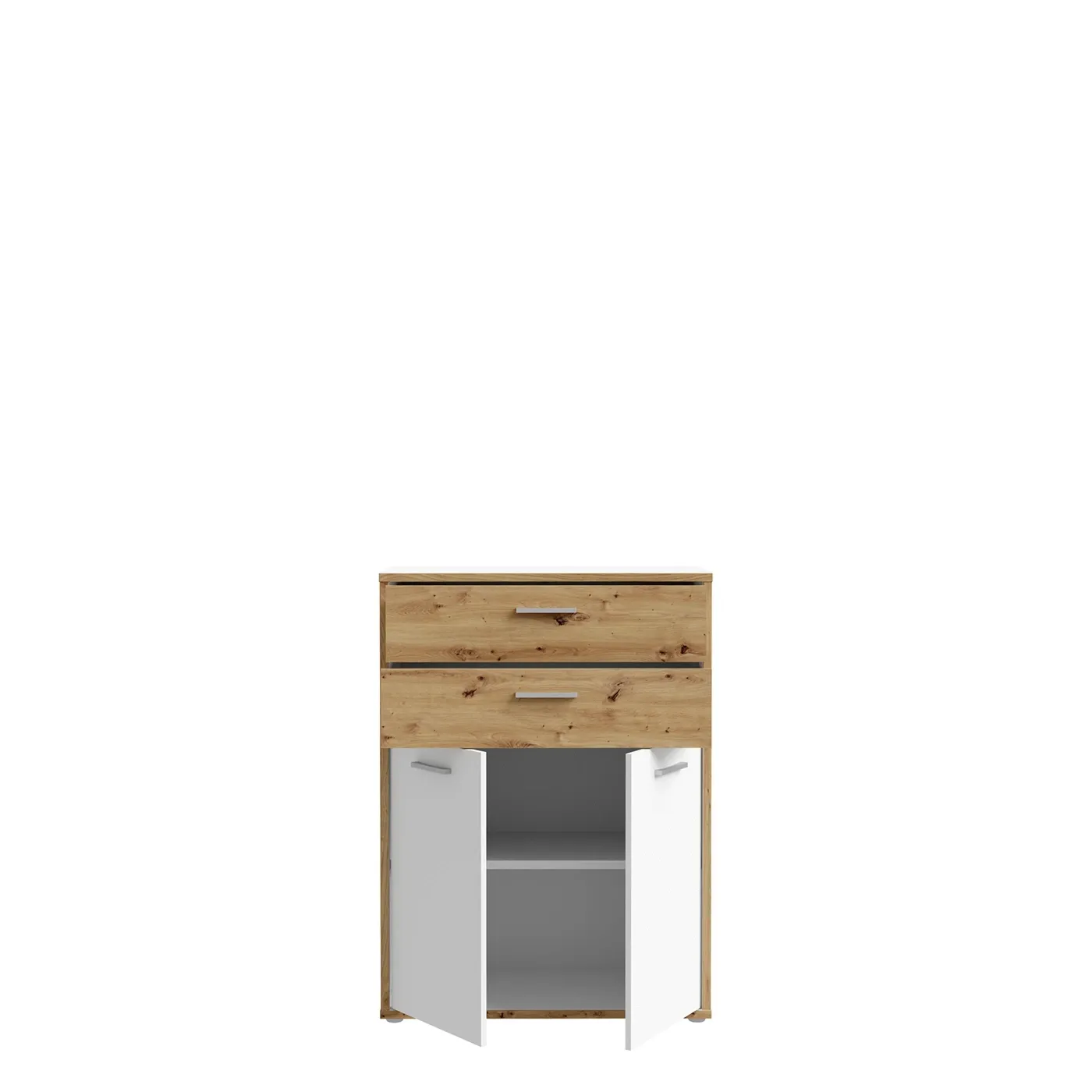Nessuna delusione arriva anche per quanto riguarda l'aspetto fisico di questo pezzo poichè rispetto ad altri modelli qui la distribuzione dei colori, Bianco e Rovere artisan, è meglio bilanciata, con il secondo che arriva a lambire entrambi i cassetti mentre il primo ricopre sia le ante che la restante parte della struttura.