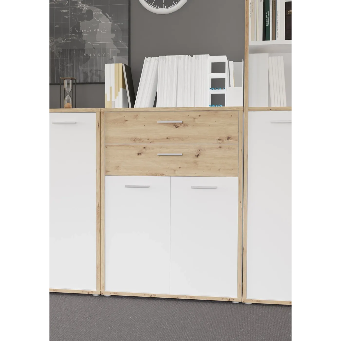 Madia multiuso, 85,x116x42 h cm, Bianco e Rovere artisan