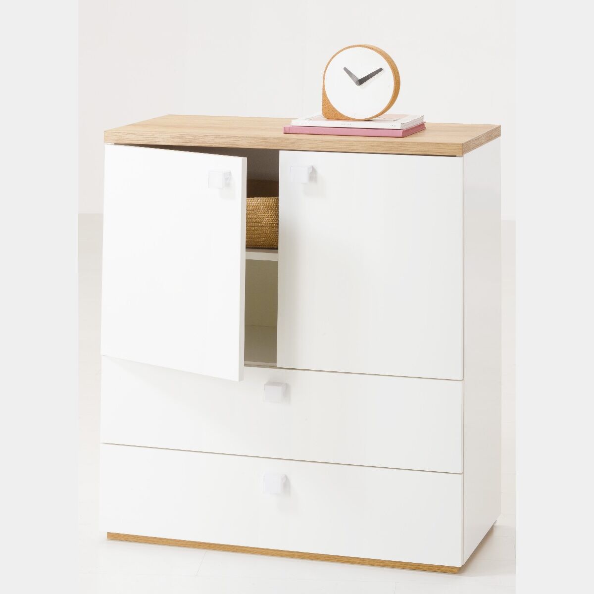 Madia multiuso L.90 con 2 ante e 2 cassetti in Bianco laccato e Rovere