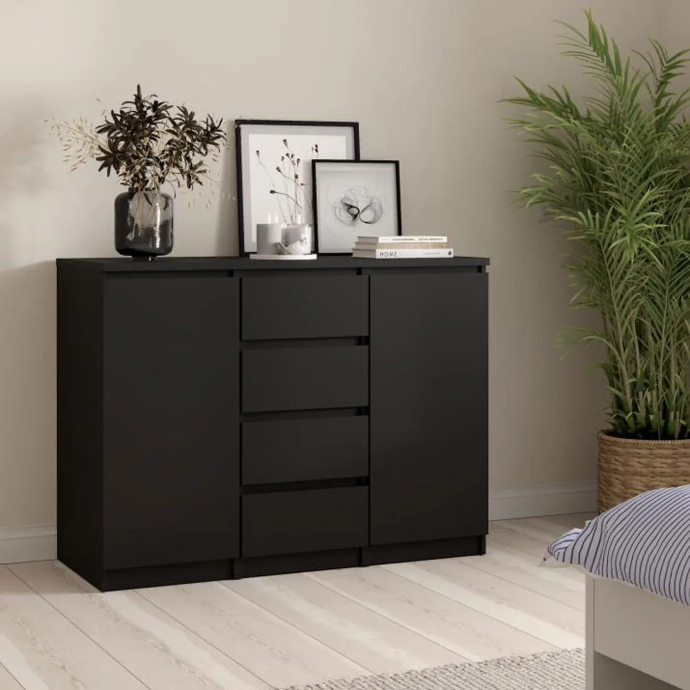 Madia Nero opaco con quattro cassetti e due ante