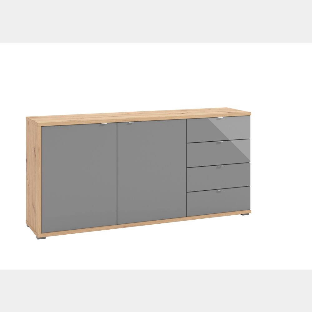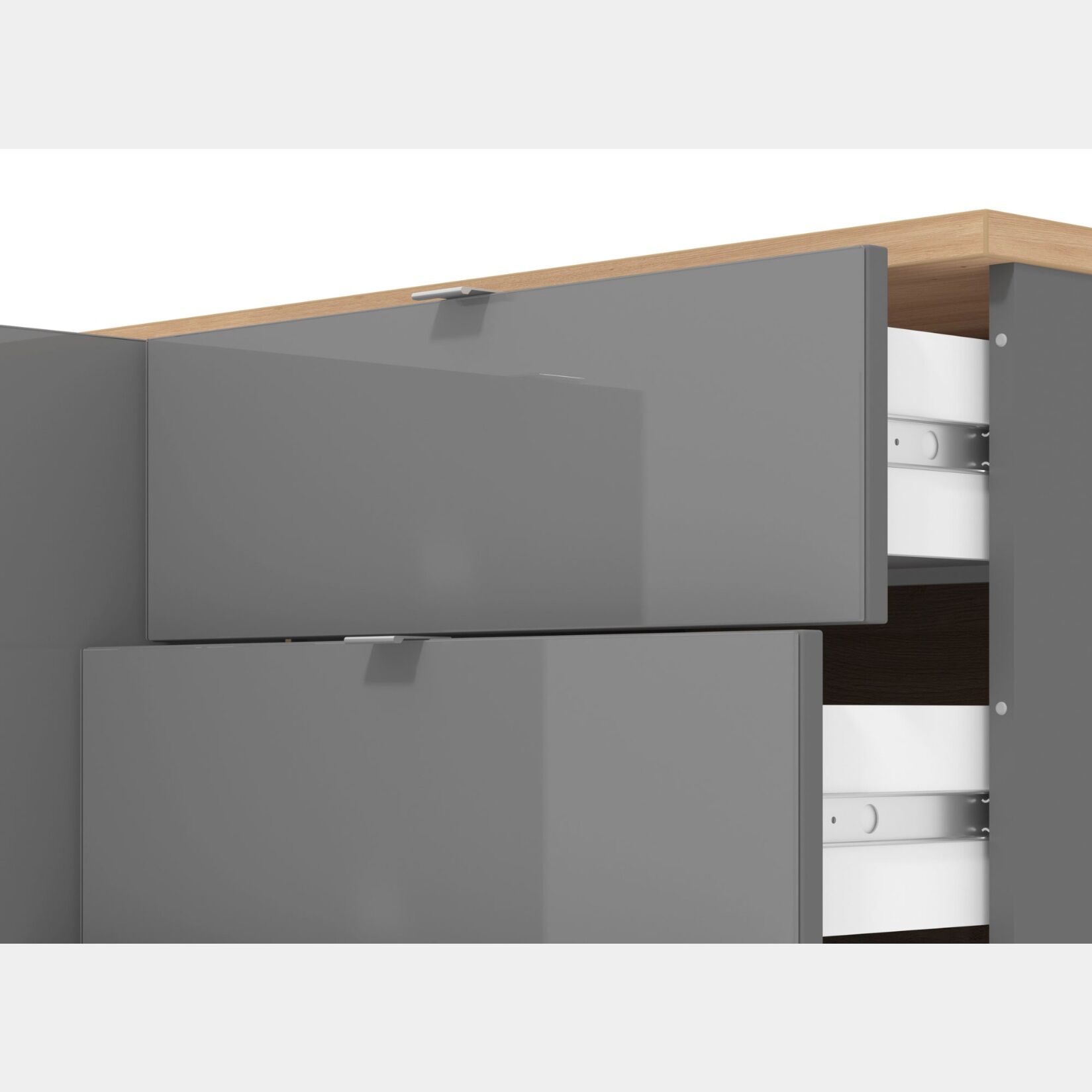 Minimal ed essenziale, la credenza finitura Grigio e Rovere è un elemento indispensabile dello stile contemporaneo. Ispirata al design moderno, è costituita da una struttura Rovere combinata con frontali in vetro Grigio, che contribuisce ad allegerire visivamente l'ambiente in cui viene inserita: per questo è ideale anche per gli spazi più ristretti!