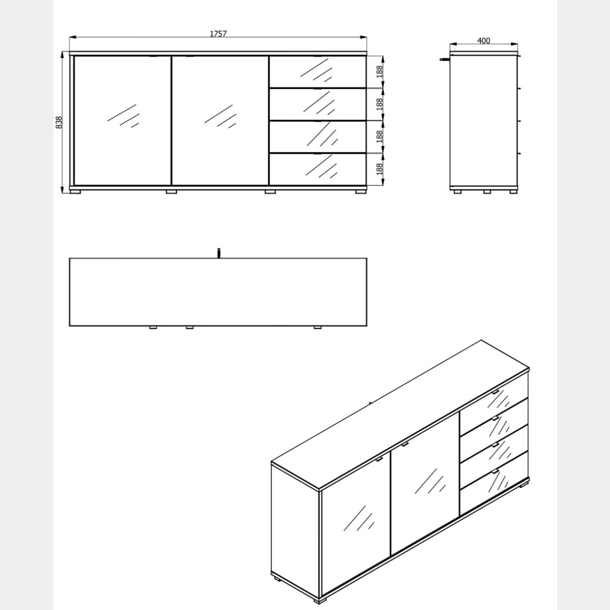 E' dotata di 2 ante e 4 cassetti, questa madia di design ti offrirà quindi la possibilità di sistemare con cura le tue cose e avere sempre tutto in ordine.