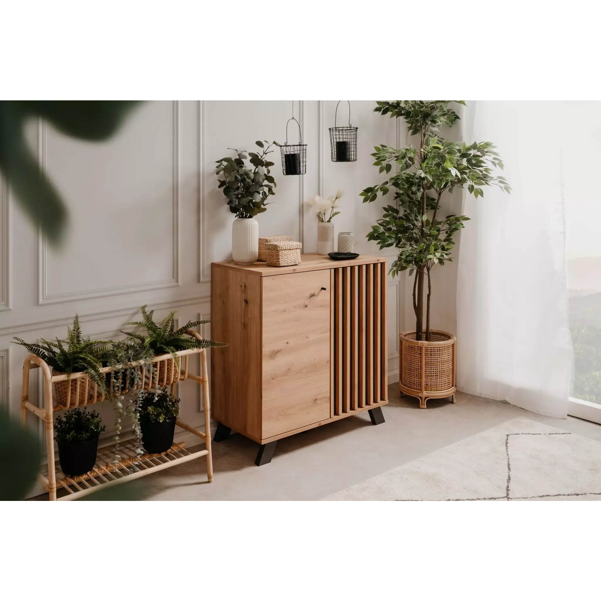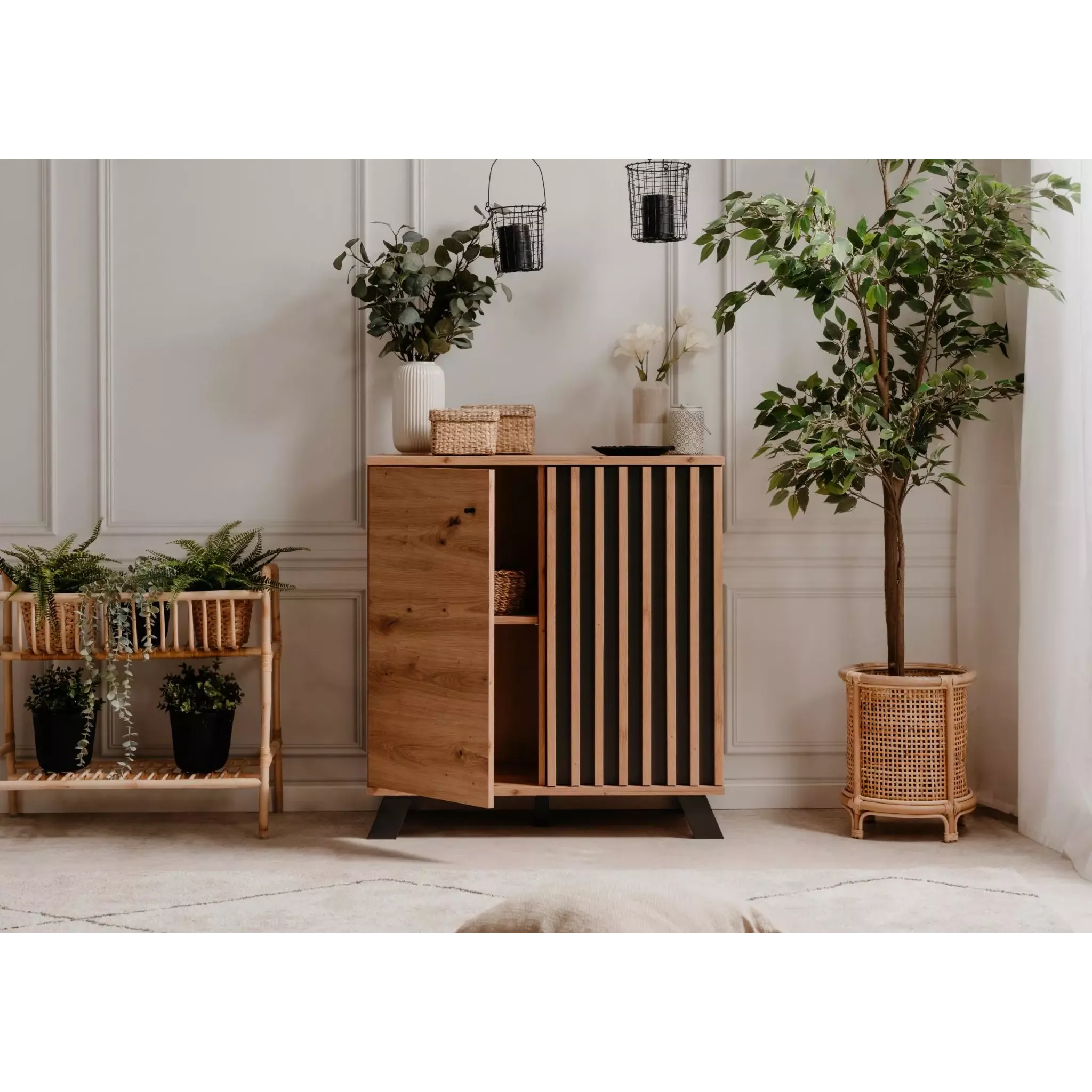 La credenza moderna Rovere Oak e Antracite è una comoda soluzione dotata di 2 ante battenti.
