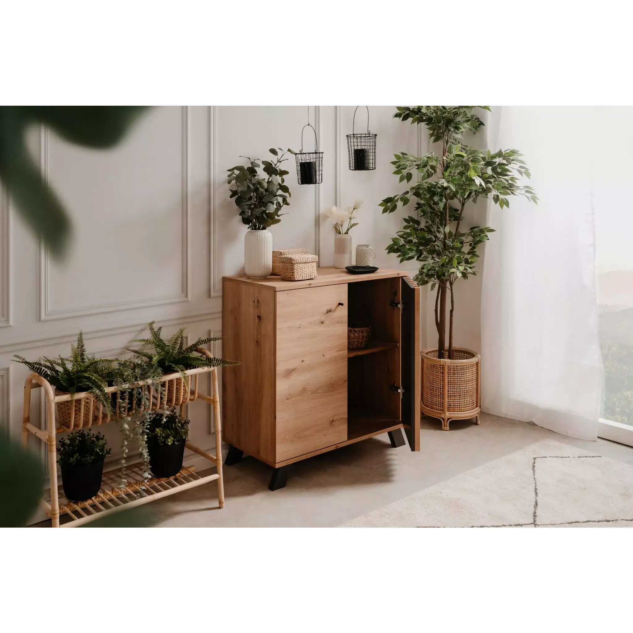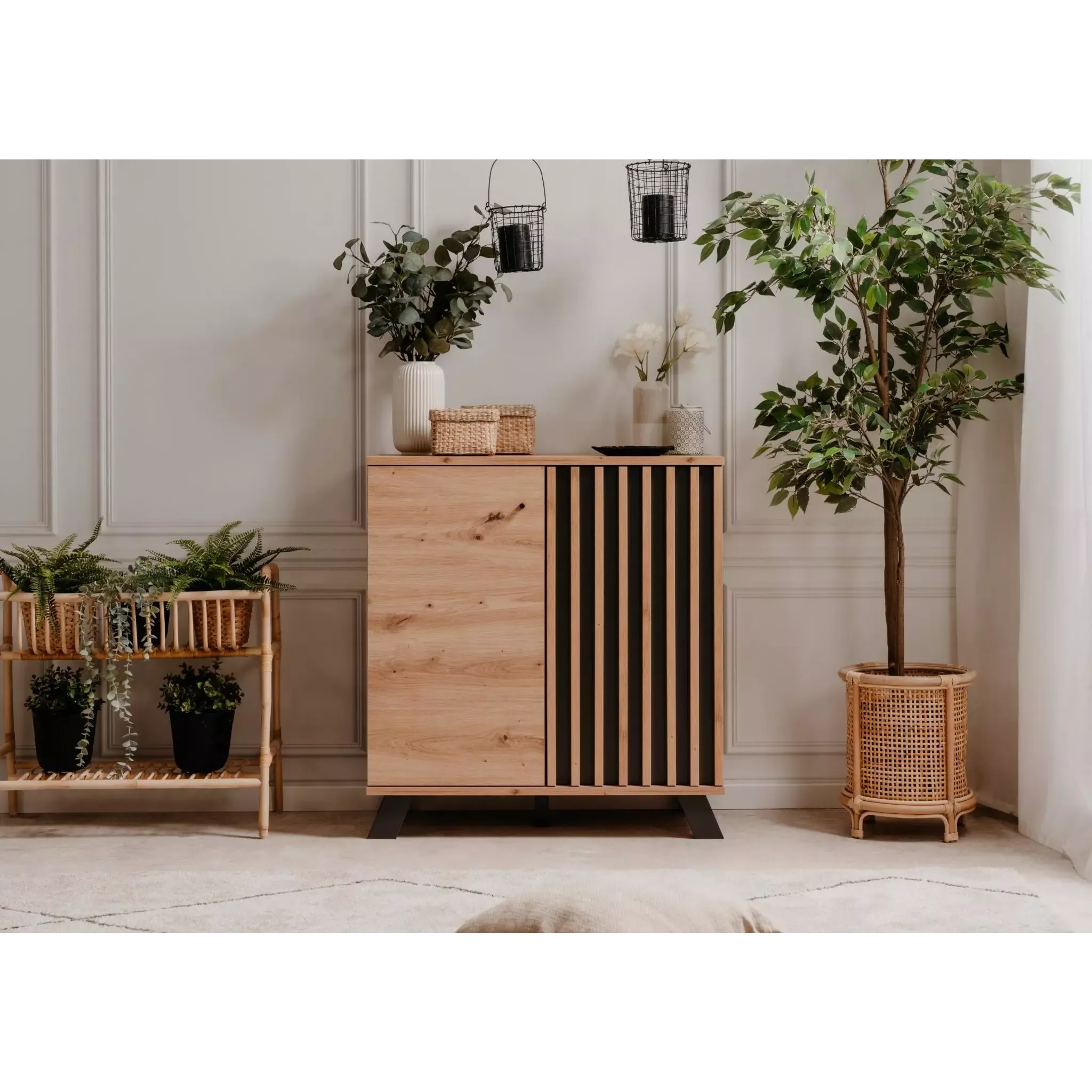 Madia salvaspazio stile nordico 2 ante, finitura Rovere Oak e Antracite