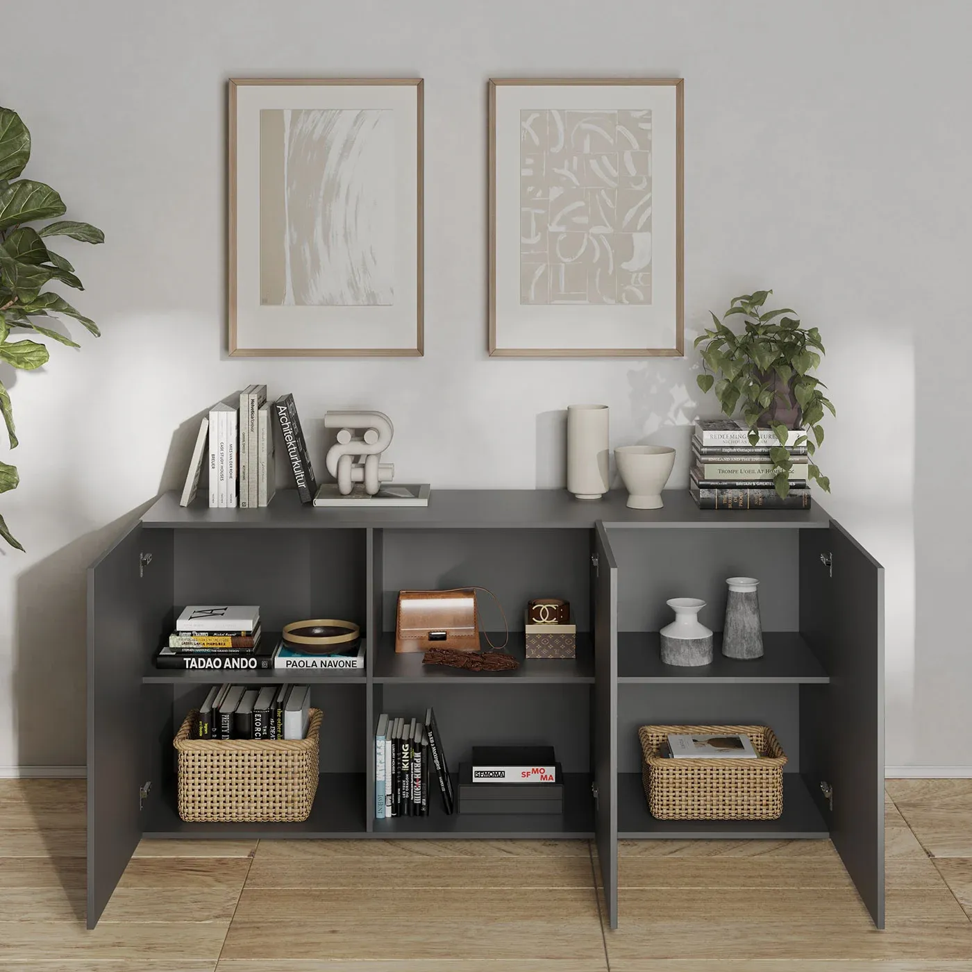 Madia serigrafata 3 ante con o senza piedini, L.181 P.42 h cm, Antracite
