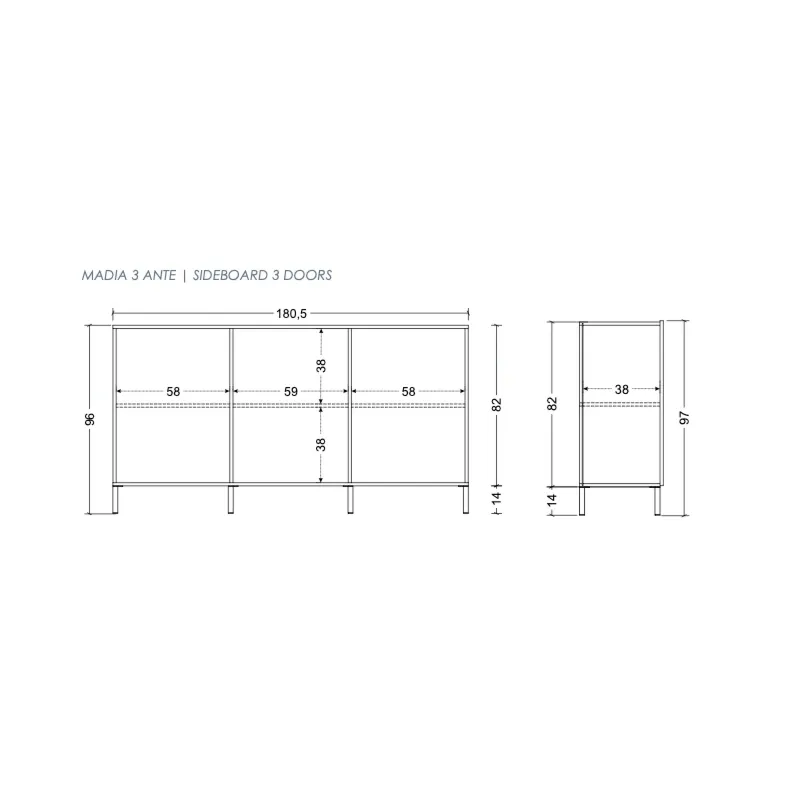 La madia è dotata di 3 ante battenti e di 3 ripiani interni, l'ampio spazio contenitivo assicura un valido appoggio per piatti, biccheri, documenti e molto altro.