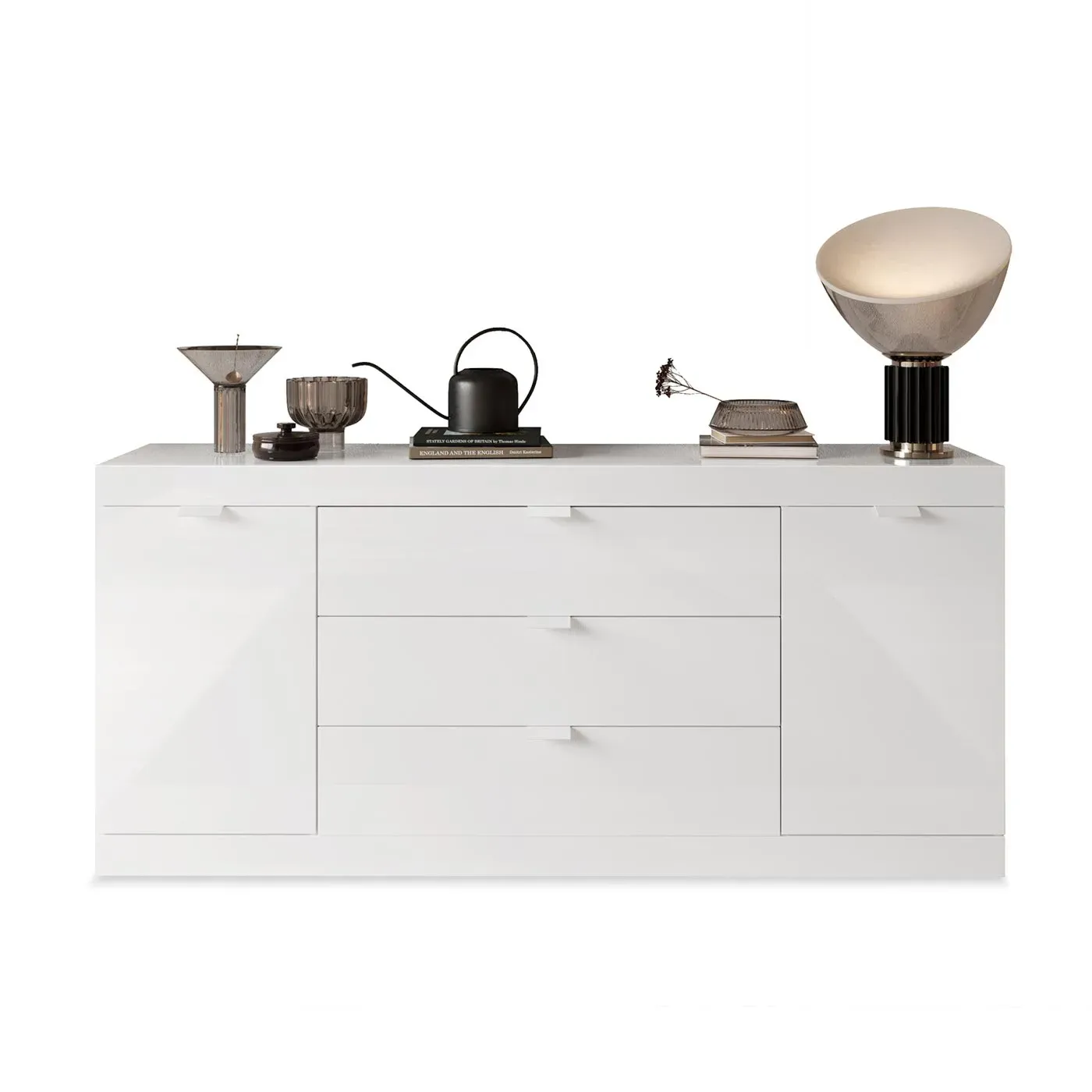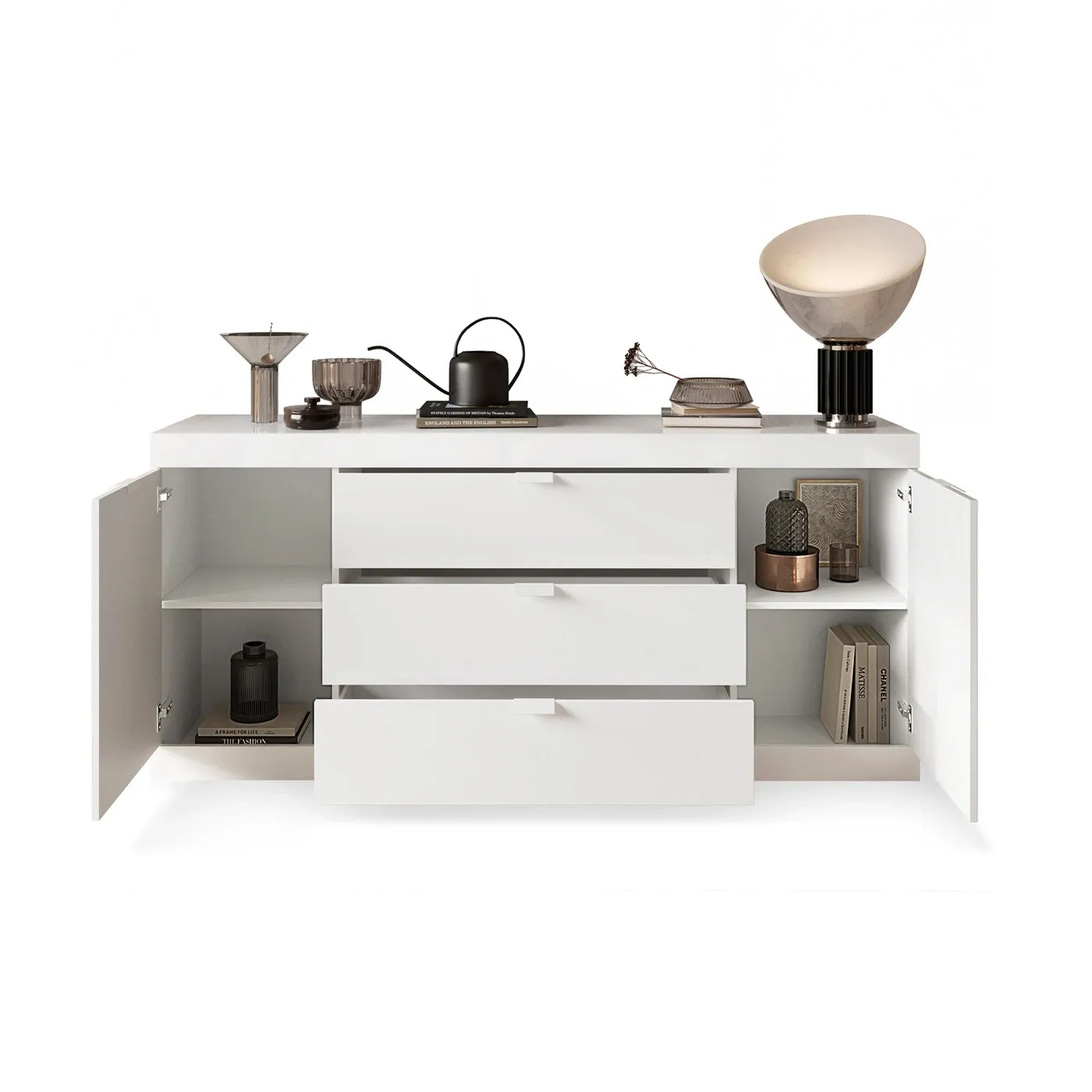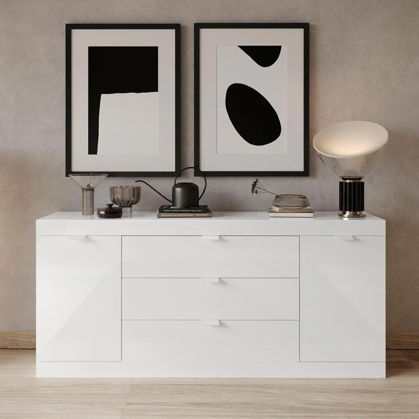 Madia moderna 3 cassetti 2 ante, 180x84x42 h cm, Bianco lucido