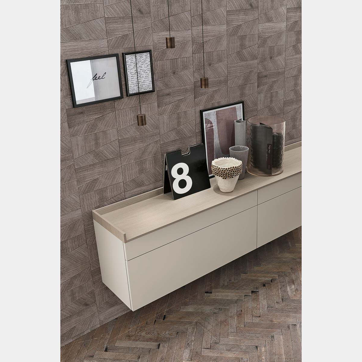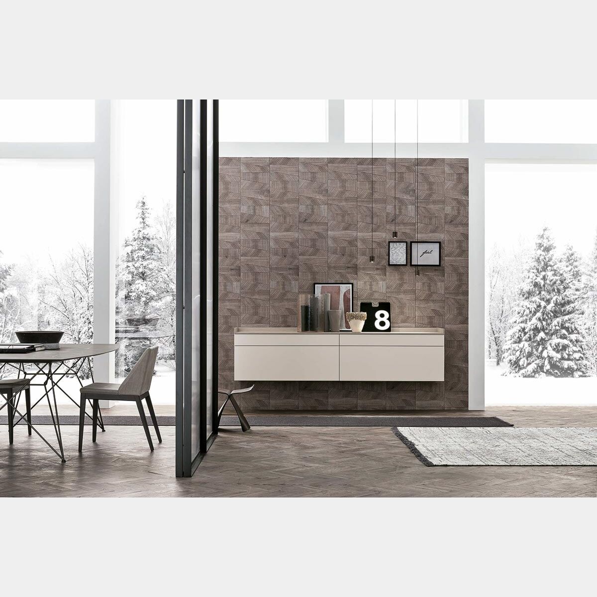 La madia presenta un design leggero e moderno, caratterizzata da neutre finiture dalla differente texure assicura al living un'inconfondibile stile, capace di donare personalità e carattere all'ambiente. L'ampia gamma di finiture assicura una completa personalizzazione della madia per assicurare ad ognuno il complemento d'arredo perfetto per il proprio soggiorno.