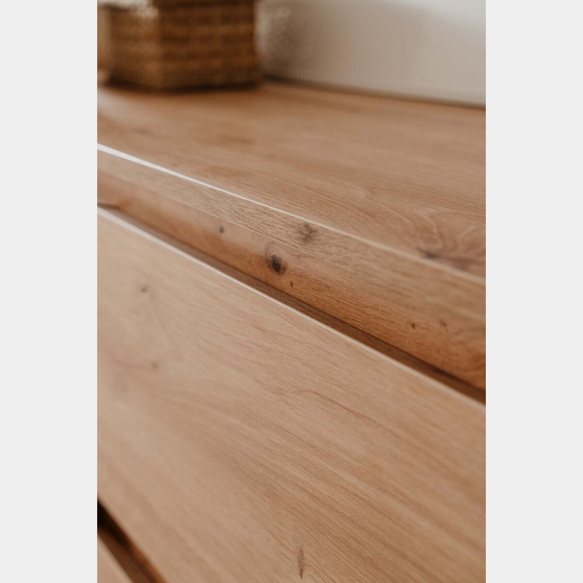 La linea semplice e pulita assicura un complemento d'arredo moderno e caratteristico, enfatizzato dall'irregolare finitura Rovere.